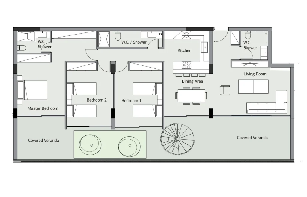 • Covered Veranda: 59 m²