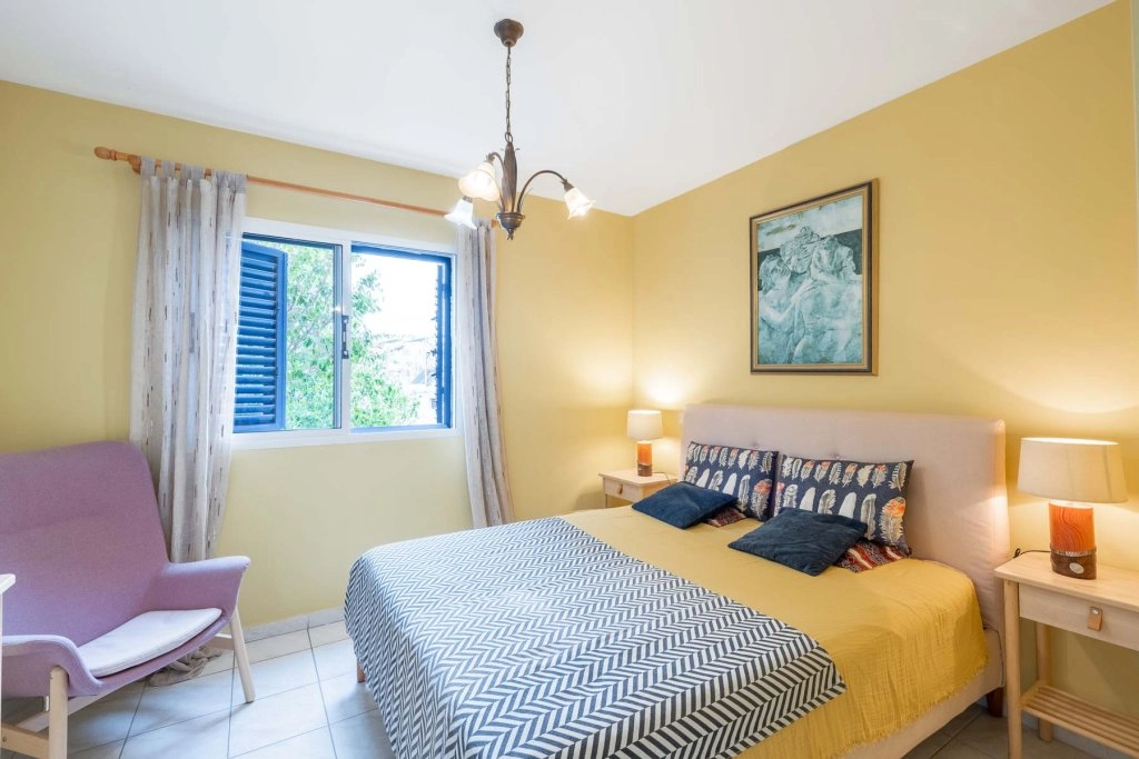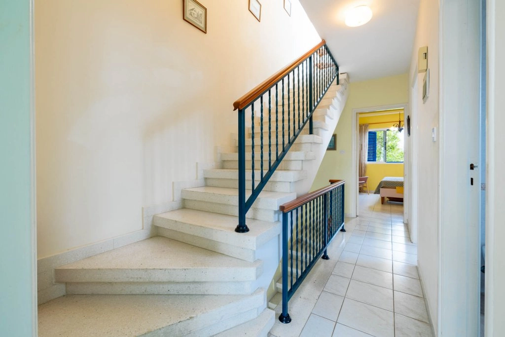 Upstairs, three well-proportioned bedrooms feature built-in wardrobes, while a shared family bathroom completes the upper level. A private rooftop terrace offers spectacular sea views and refreshing breezes—perfect for quiet mornings or sunset relaxation.