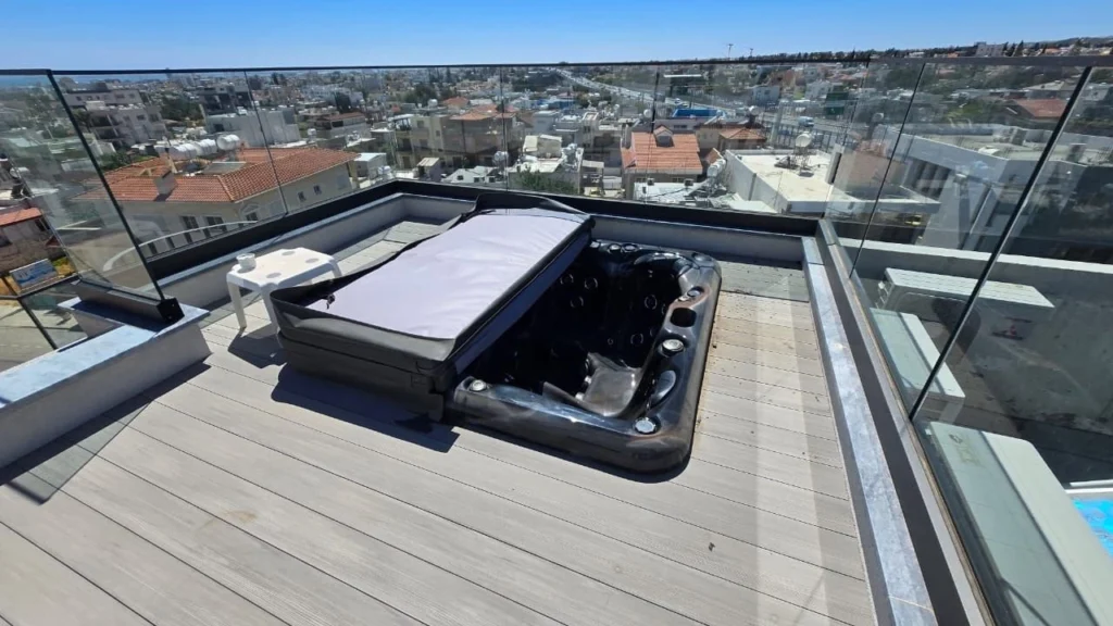 A standout feature is the 72 sq.m. private roof garden, accessible via a spiral staircase. It offers breathtaking city and sea views, a designated kitchen area with electricity, and 24 sq.m. of elevated space with a jacuzzi, plus a provision for an outdoor bathroom with shower and toilet—an entertainer’s dream.