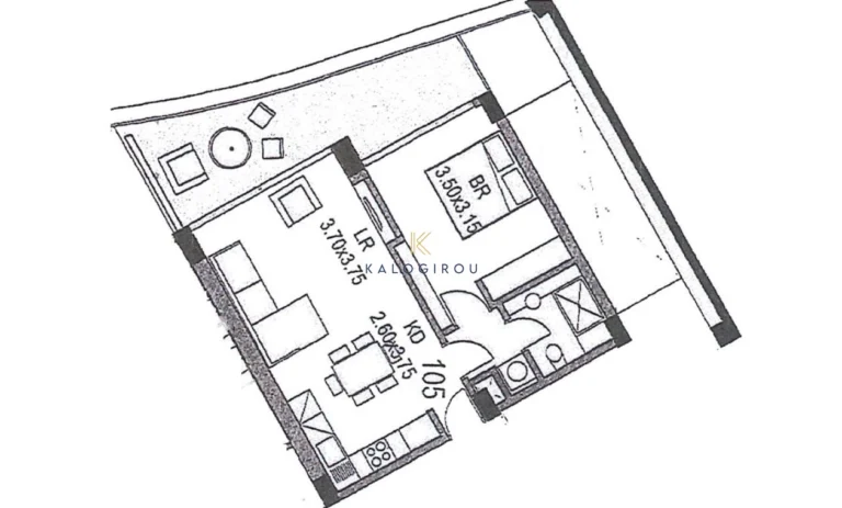 Apartment for sale in Agia Thekla, Famagusta district. The apartment consists of an open plan kitchen, living, dining area, a main bathroom (with shower), one bedroom and covered veranda with amazing sea and pool view. The owners have access to the complex’s common pool and exclusive right of use to a covered parking.