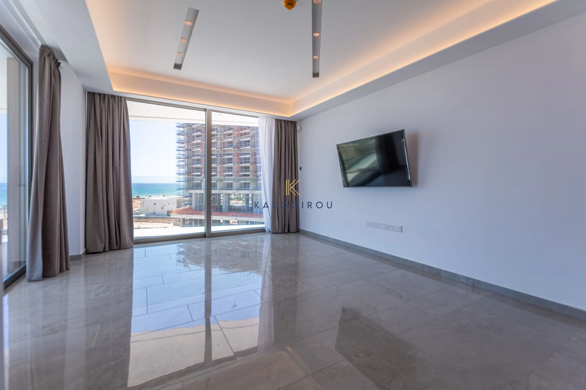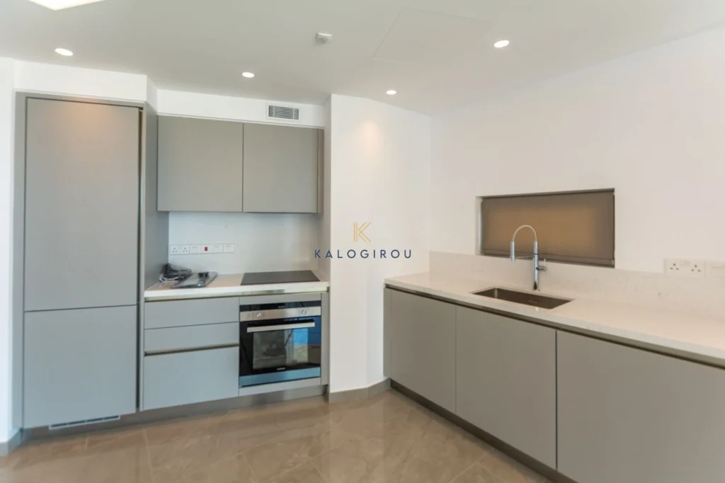 Third floor apartment for sale in Agia Thekla, Famagusta district. It consists of an open plan kitchen, living, dining area, a main bathroom (with tub), one bedroom and covered veranda with amazing sea and pool view. The owners have access to the complex’s common pool and exclusive right of use to a covered parking.