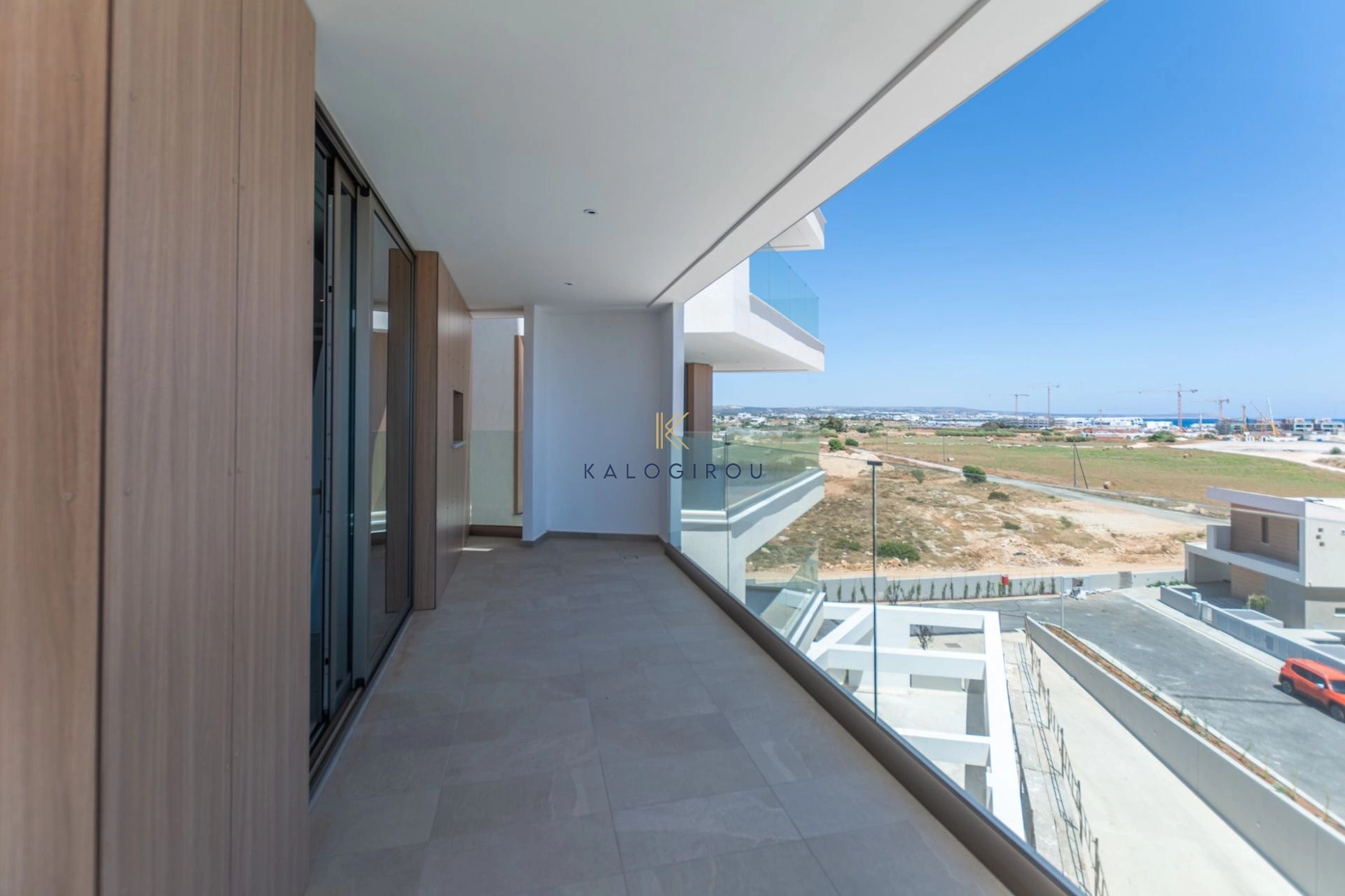 Third floor apartment for sale in Agia Thekla, Famagusta district. It consists of an open plan kitchen, living, dining area, a main bathroom (with tub), one bedroom and covered veranda with amazing sea and pool view. The owners have access to the complex’s common pool and exclusive right of use to a covered parking.