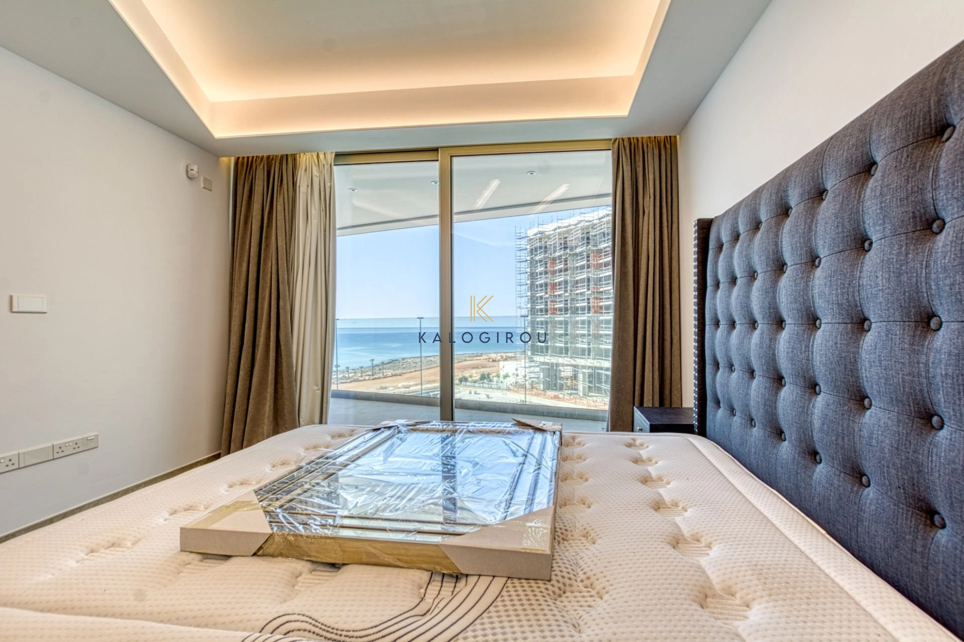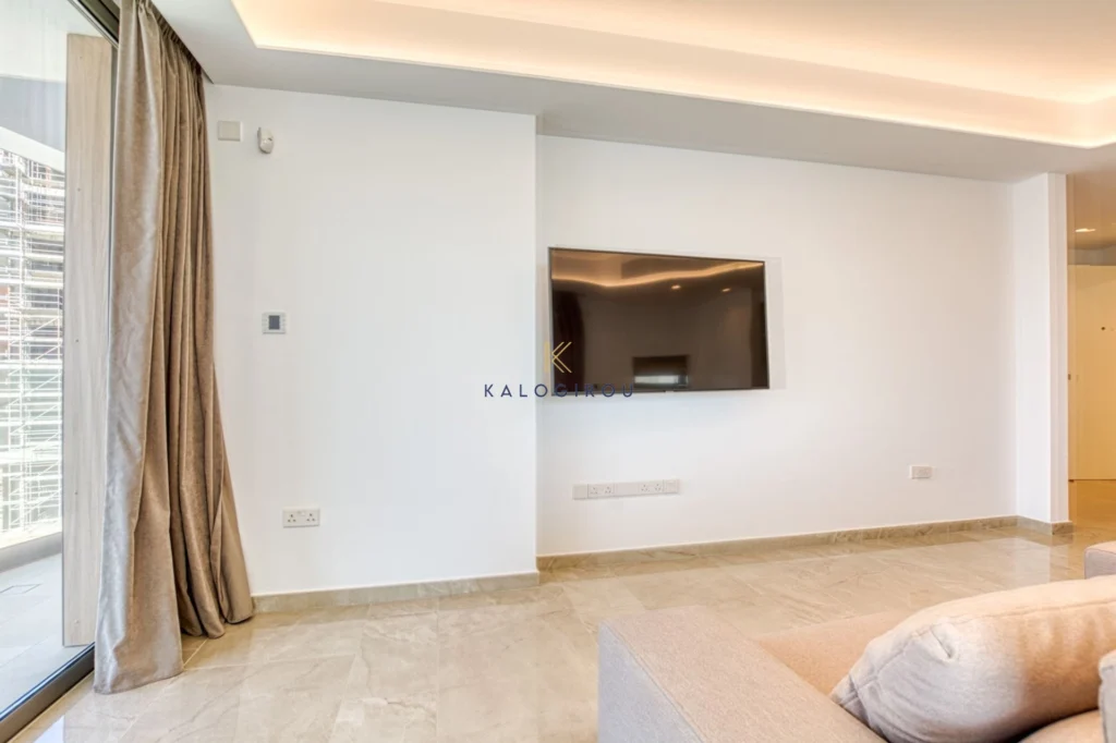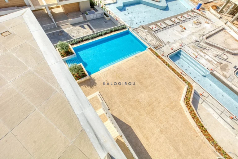 Amazing fourth floor apartment for sale in Agia Thekla, Famagusta district. It consists of an open plan kitchen, living & dining area, a main bathroom (with tub), two bedrooms, en suite bathroom in the primary bedroom and spacious covered veranda with breathtaking view to the sea and to the pool. The owners have access to the complex’s common pool and exclusive right of use to a covered parking.