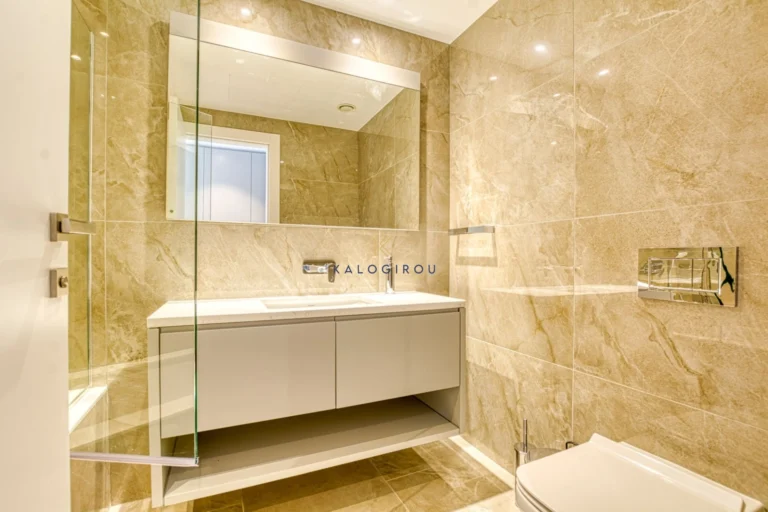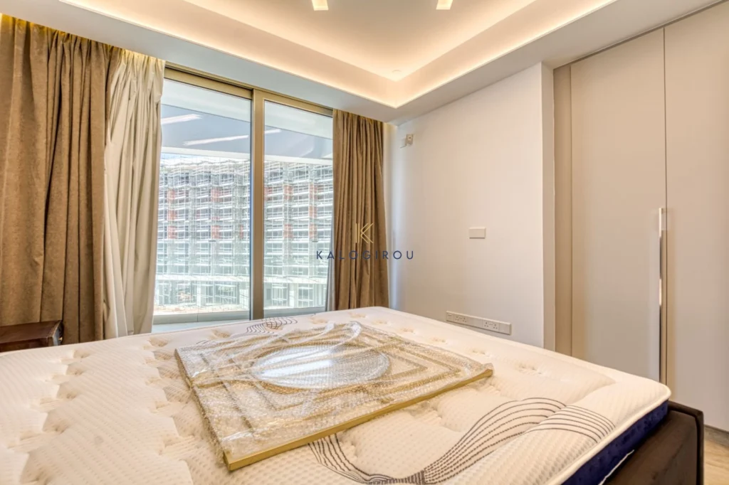 Amazing fourth floor apartment for sale in Agia Thekla, Famagusta district. It consists of an open plan kitchen, living & dining area, a main bathroom (with tub), two bedrooms, en suite bathroom in the primary bedroom and spacious covered veranda with breathtaking view to the sea and to the pool. The owners have access to the complex’s common pool and exclusive right of use to a covered parking.