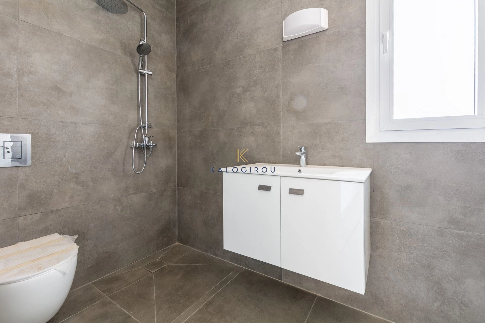 Apartment for sale in Paralimni area, Famagusta. The apartment is on the third floor with internal covered area of 83 sqm. It consists of a kitchen, living, dining area in an open space, a main bathroom, two bedrooms, one of them is en suite, uncovered veranda of 12 sqm and spacious roof garden of 58 sqm. Residents have access to a covered parking bay on the ground floor. Year of construction is 2024.