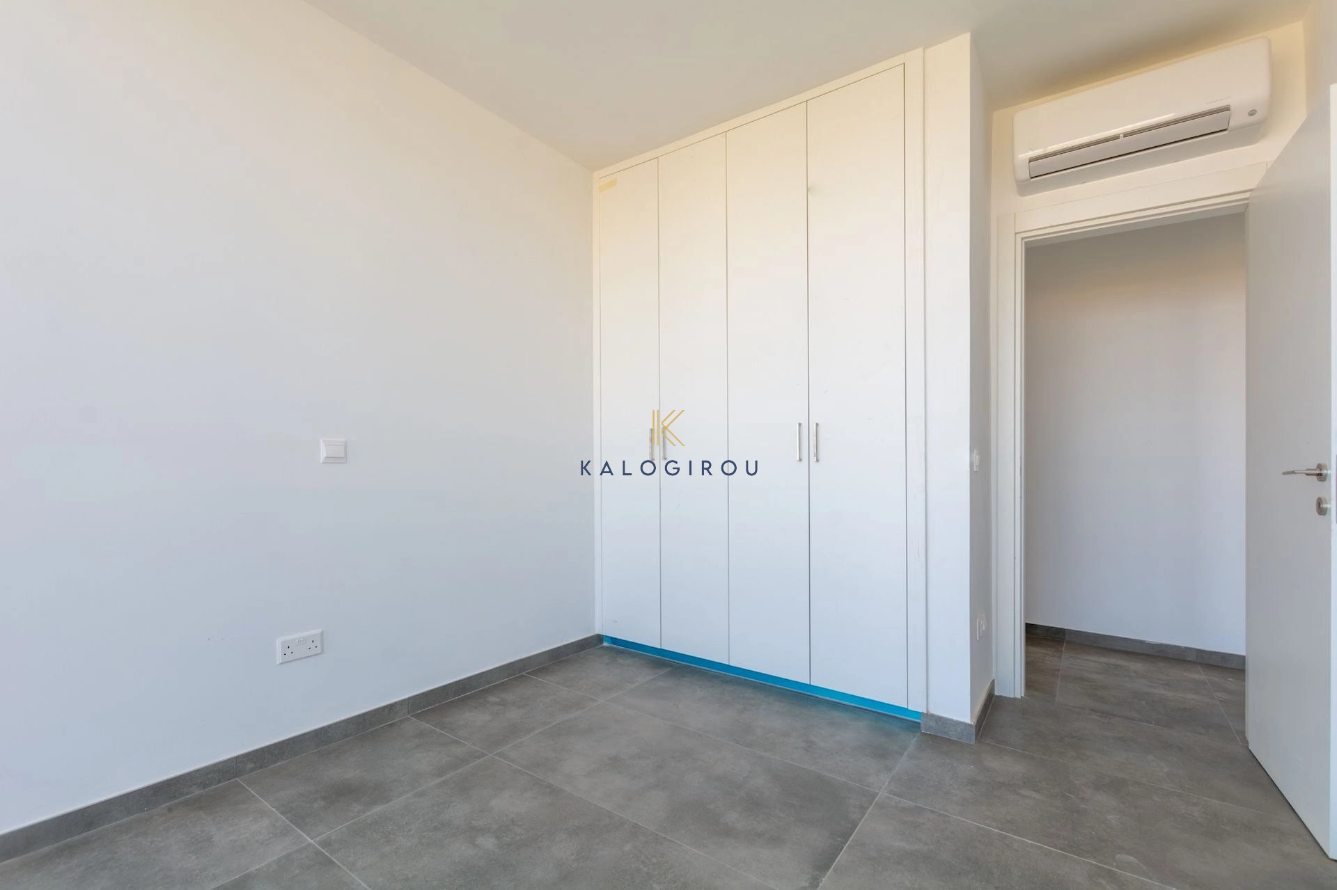 Apartment for sale in Paralimni area, Famagusta. The apartment is on the third floor with internal covered area of 83 sqm. It consists of a kitchen, living, dining area in an open space, a main bathroom, two bedrooms, one of them is en suite, uncovered veranda of 12 sqm and spacious roof garden of 58 sqm. Residents have access to a covered parking bay on the ground floor. Year of construction is 2024.