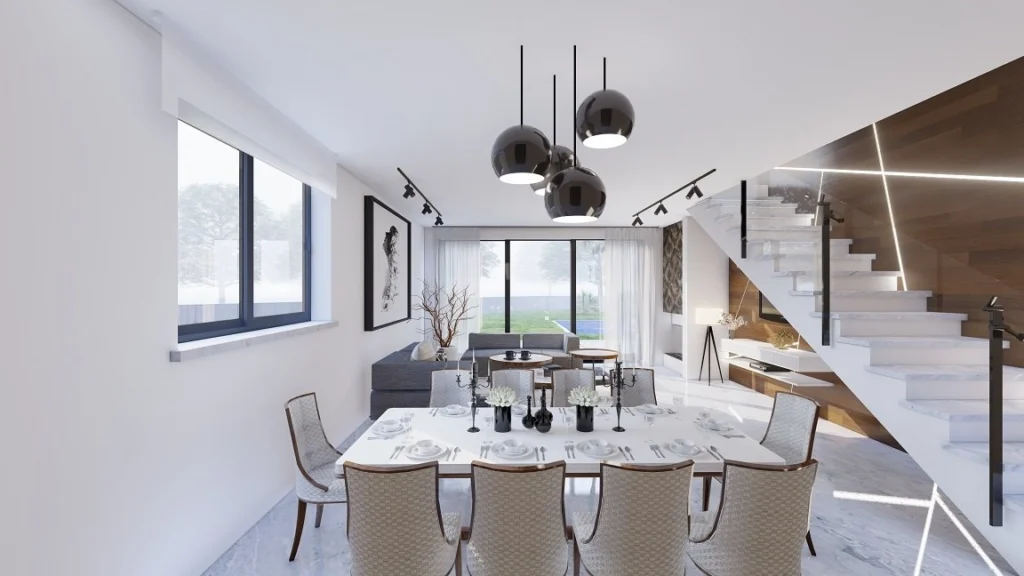 The open-plan living area seamlessly connects to the private garden, while upstairs, the spacious bedrooms provide comfort and privacy. A large rooftop terrace serves as an additional outdoor living space, perfect for enjoying panoramic views and the Mediterranean breeze. For added indulgence, a private swimming pool can be added, completing the perfect leisure setting.