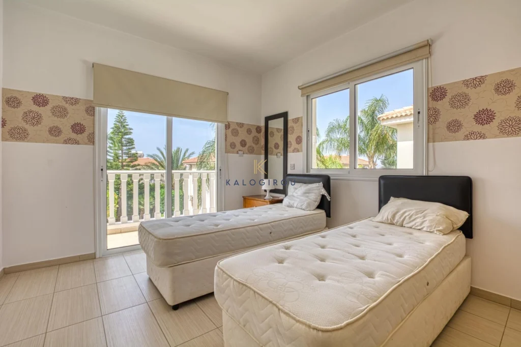 Villa for sale in Agia Napa. The house has spacious and comfortable internal covered of 176 sqm. The main floor consists of an open plan kitchen, living, dining area and a guest wc. The first floor consists of a main bathroom (with tub), 3 bedrooms, all of them with access to the covered veranda. Master bedroom is also en suite with shower and wc. Externally, the villa has garden, private swimming pool and barbeque area. Plot area of the property is 424 sqm.