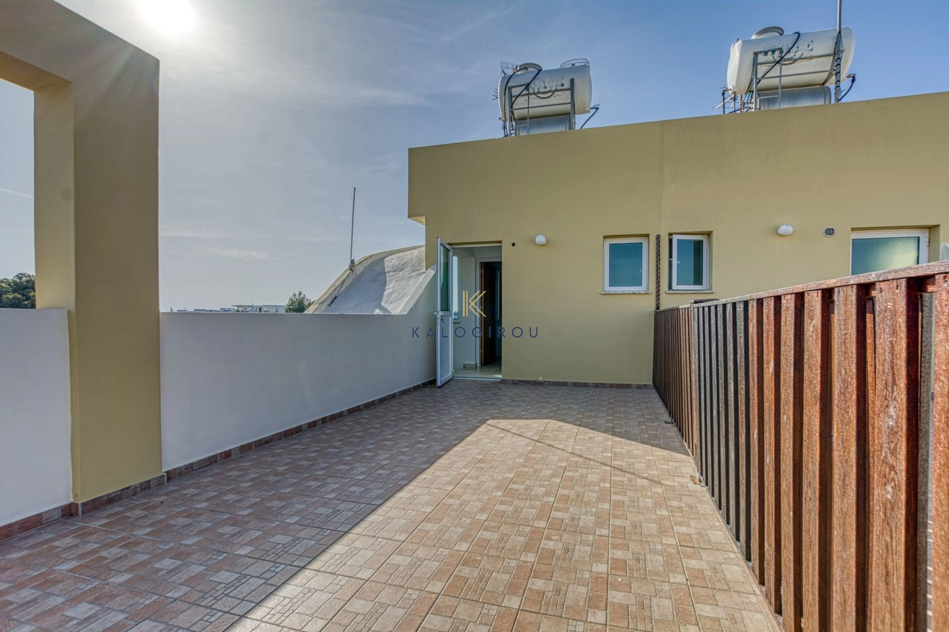 Maisonette for sale in Paralimni area, Famagusta. The ground floor consists of an open plan kitchen, living, dining area, guest wc, covered veranda and yard. The first floor consists of the main bathroom, three bedrooms, en suite shower and wc in the master bedroom, and covered veranda. In addition, the house has terrace on the roof top. The property provides uncovered parking.