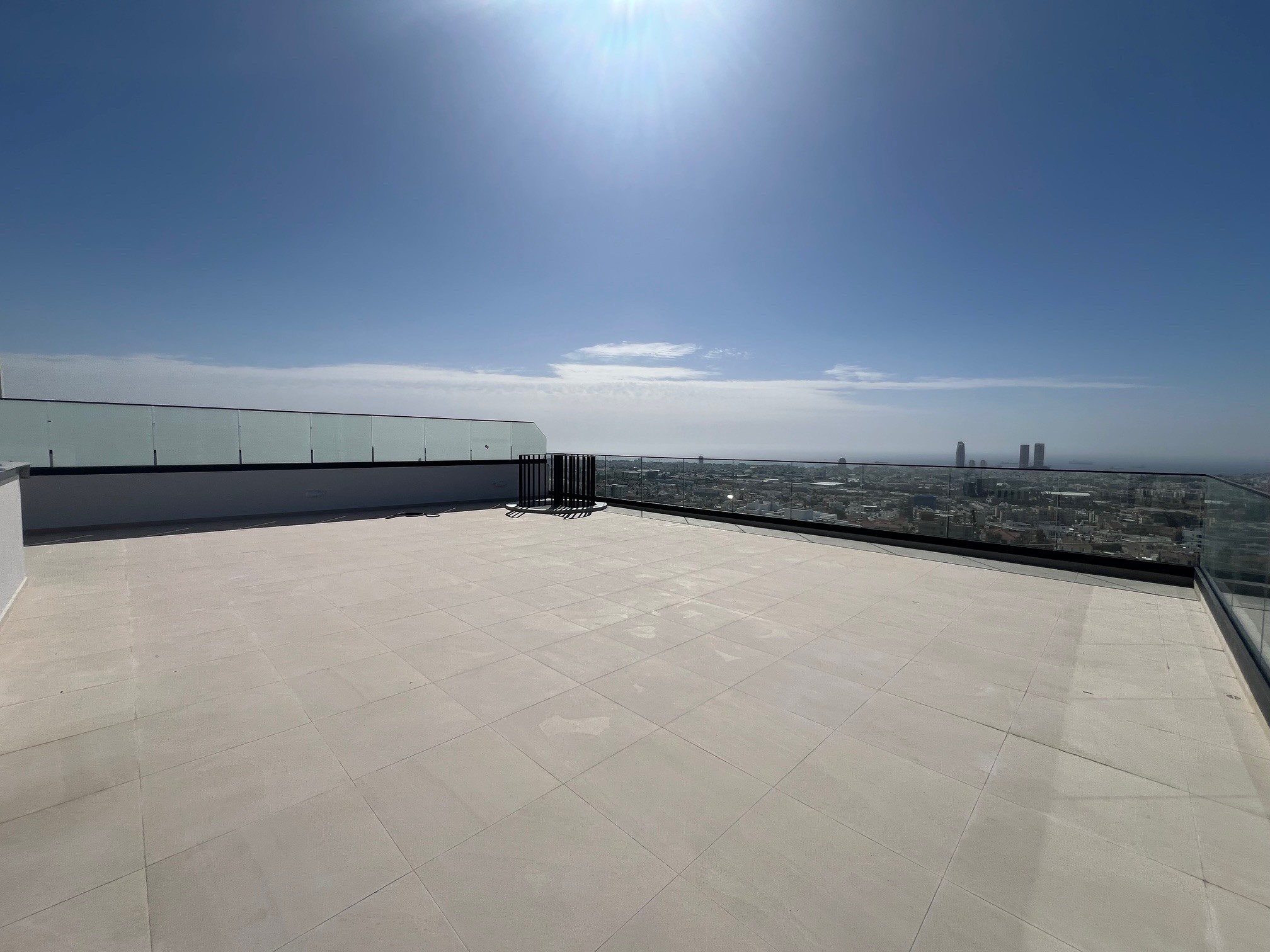 For sale brand new 3 b/r penthouse with sea and city views located in a private gated complex on the hill in Agios Athanasios area, with easy access to the highway. The internal area is 135 sq. m + 53 sq. m covered veranda and 138 sq. m roof garden with panoramic views. It consists of an open-plan kitchen connected with a dining and living area, 3 bedrooms (2 bedrooms en-suite with shower and bathtub) and a family bathroom. Upstairs, there is a spacious roof garden with BBQ area. It has an air conditioning system, underfloor heating, panoramic double-glazed windows, solar panels for hot water and photovoltaic for solar energy, an intercom system, covered parking and storage.