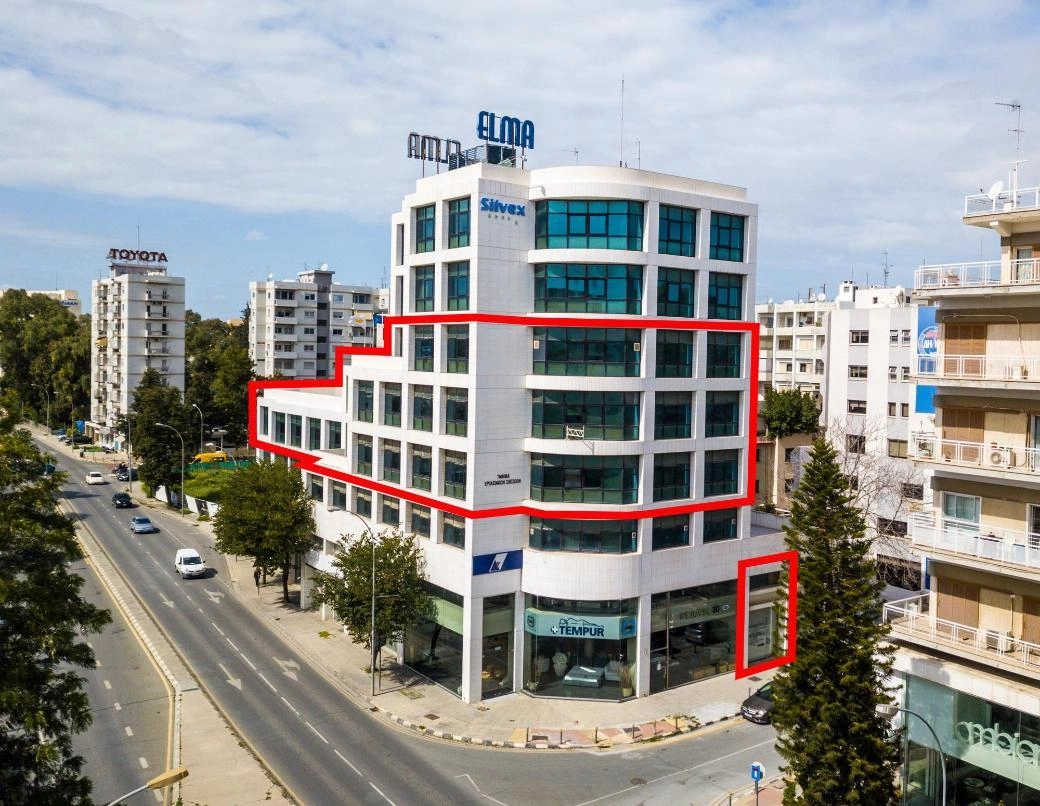 The property refers to offices on the 2nd 3rd 4th floors and office no. 4 on the ground floor in Agioi Omologites. The offices are part of a mixed use building known as Silvex House which abuts on Griva Digeni Avenue. The 4th floor has an area of 238sqm the 3rd floor 328 sqm and the 2nd floor 630sqm. The office no. 4 has a ground floor area of 34 sqm plus a mezzanine of 16 sqm. The property has the right to 23 parking spaces. The offices are currently rented by Government Services. The property holds a premium location with high visibility in Nicosia Business Centre. It offers excellent proximity to all amenities public services bars and restaurants. It is a great investment opportunity for high rental income at the centre of the capital. The procedure for the issuance of separate title deeds for each unit has been initiated. Sale to be effected through a transfer of share and a distribution agreement. There is a certificate of final approval in place.