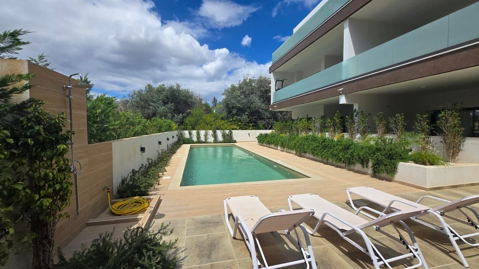 A modern 2-bedroom apartment located in one of Limassol’s most desirable residential areas — Potamos Germasogeias. Built in 2023, this stylish home is part of a secure, gated complex featuring beautifully landscaped gardens, a communal swimming pool with sunbeds, a shaded pergola, and green leisure areas.