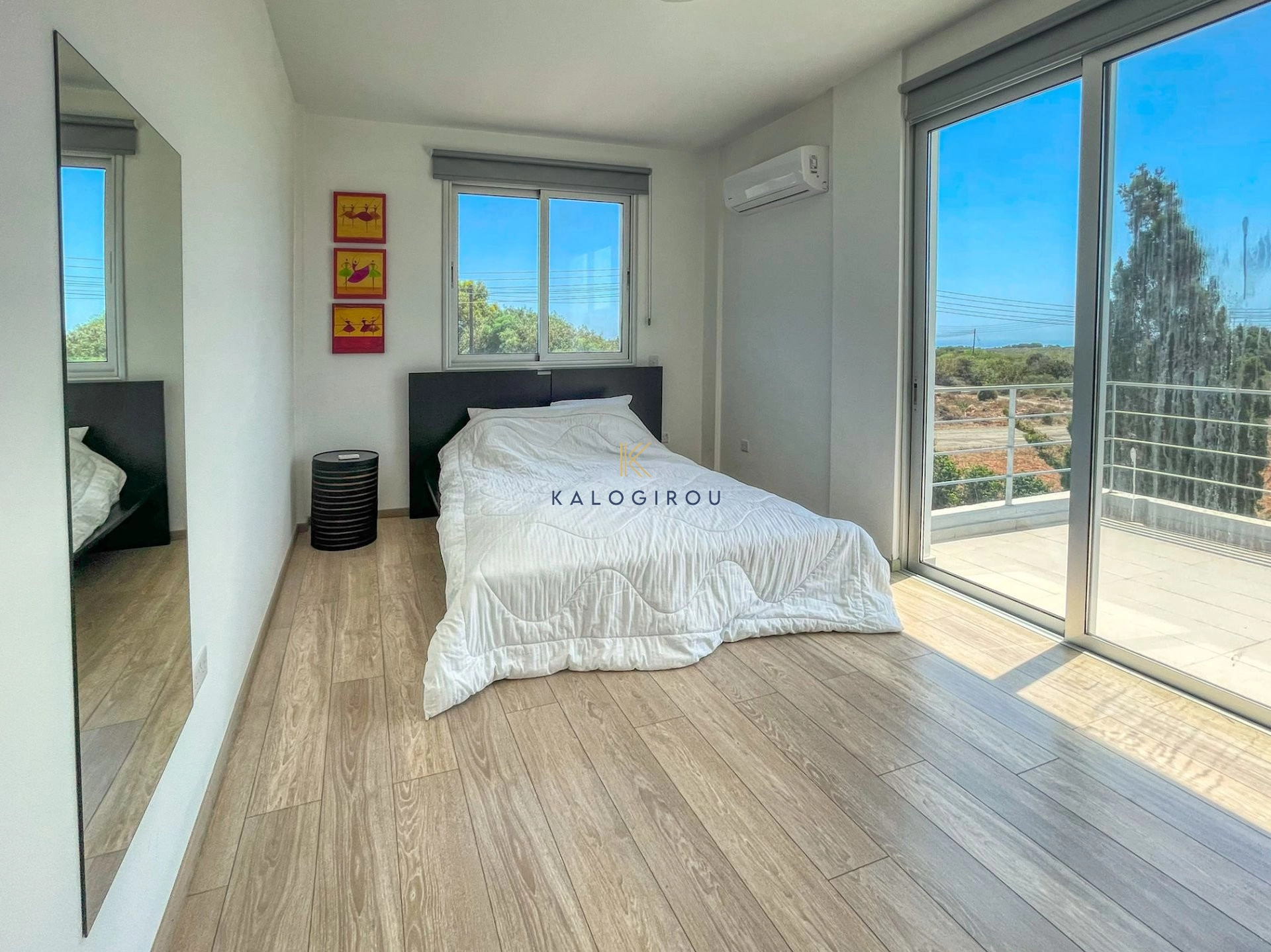 Double story house, built on a large plot, for sale in the area of Protaras. The house was built in 2008 and has internal covered area of 195 sqm. On the ground floor, it consists of an open plan kitchen, living & dining area, a bathroom (with shower), one bedroom and large covered veranda. The first floor consists of four bedrooms, 2 full bathrooms and covered veranda. All bedrooms have access to the veranda. It is worth mentioning that the first floor offers sea view.