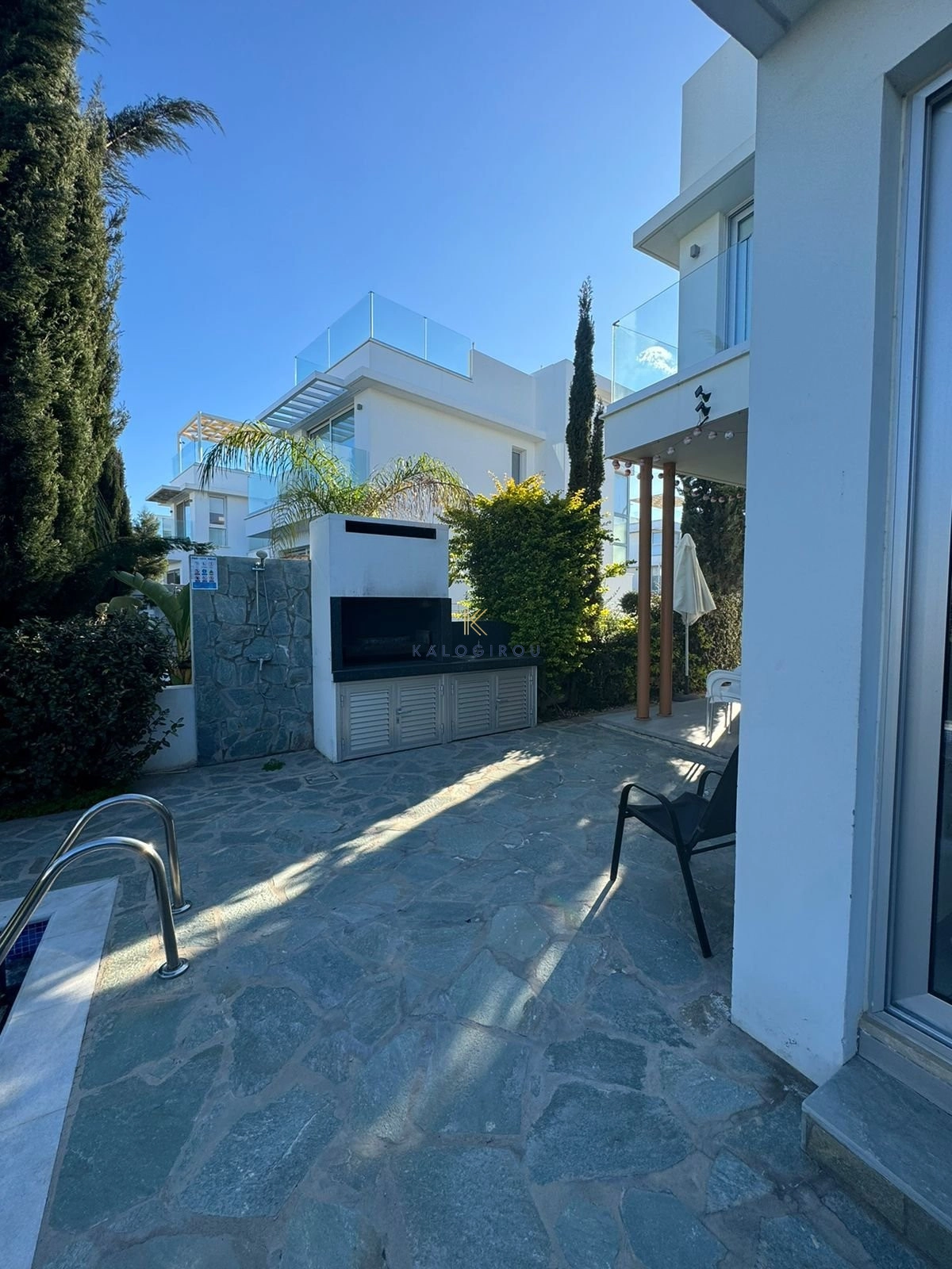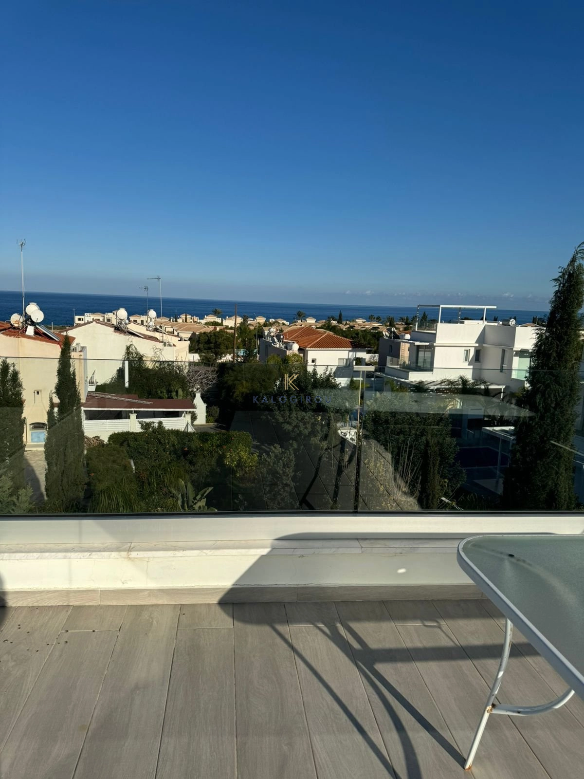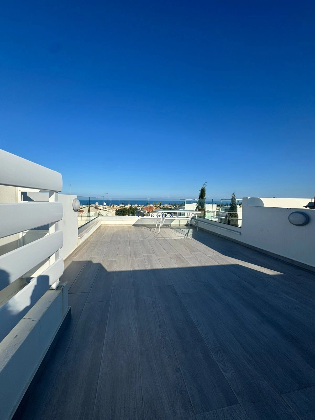 Villa for sale in Protaras area, Famagusta district. It is a two story house, furnished, with total internal covered area of 116 sqm. The ground floor consists of an open plan kitchen, living, dining area, a guest wc. The first floor consists of two bedrooms, a main bathroom with walk in shower and covered veranda. Both bedrooms have veranda access. Additionally, the house has a lovely roof garden with stunning panoramic and sea views and a basement. Externally, the property has swimming pool, garden, outdoor shower and parking space.