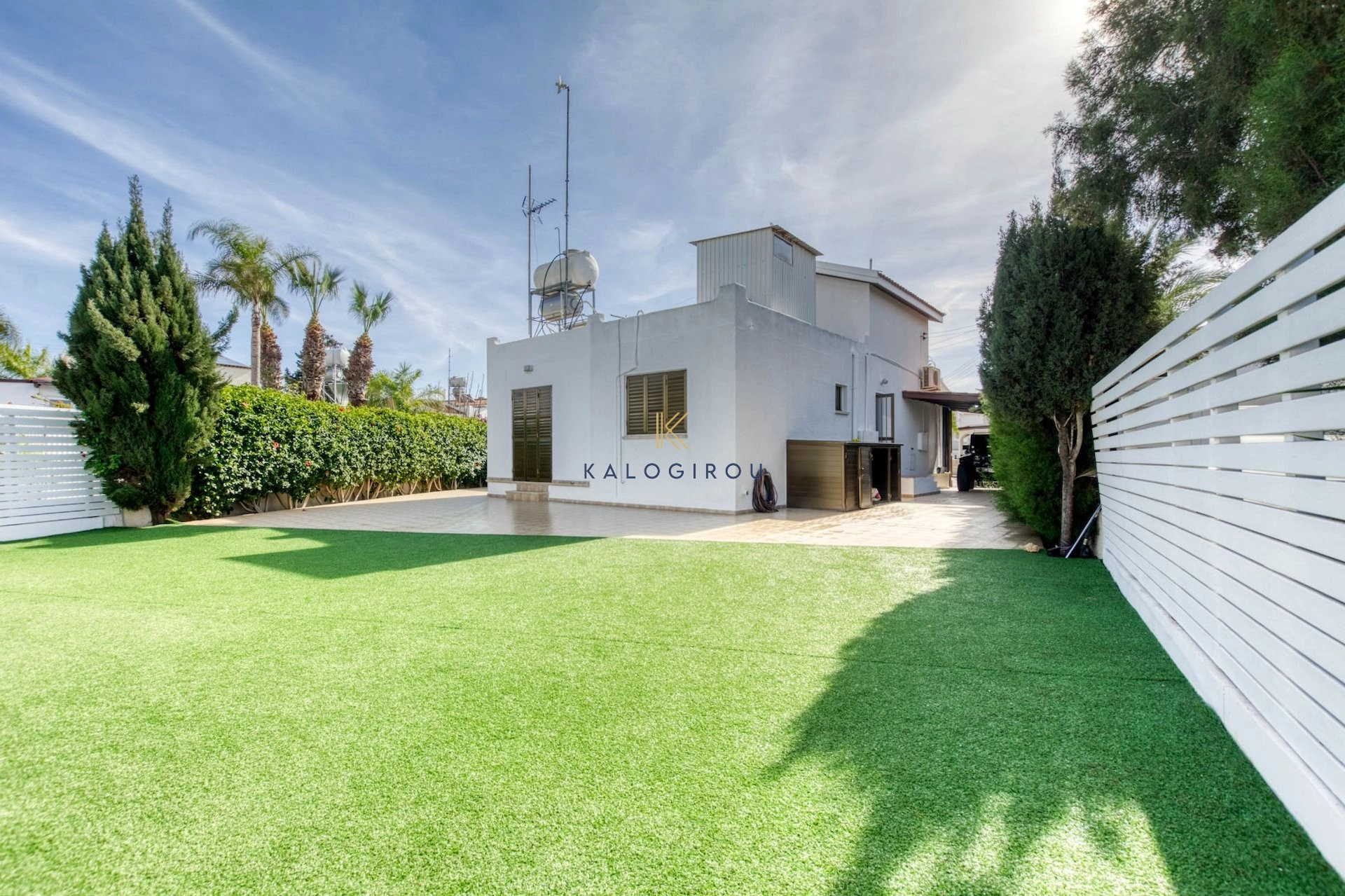 Bungalow for sale in Agia Thekla area, Famagusta. The house has internal covered area of 130 sqm and is set on a 350 sqm plot. It consists of an open plan kitchen, living, dining area, 2 bedrooms, 2 bathrooms and large verandas. Moreover, there is a large garden and covered parking.