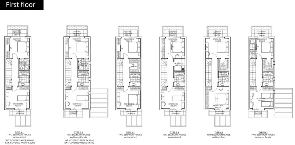 The project consists of 9 units divided into two parts. The units consist of: 1 maisonette 2/(3) bedrooms (standard and extended), with an area of 114-128 m2 and 1 apartment (1 bedroom, with an area of 70 m2) on the ground floor and an office on the upper floor. Also, each unit has: a warehouse of 10+ m2, parking, a roofgarden and a private courtyard on the inside. Common areas of the complex: swimming pool, park area, parking. View of the valley and the sea depending on the location/height. The units are 5 standard and 4 extended, they can be combined into one large maisonette of 4(5) bedrooms + office.