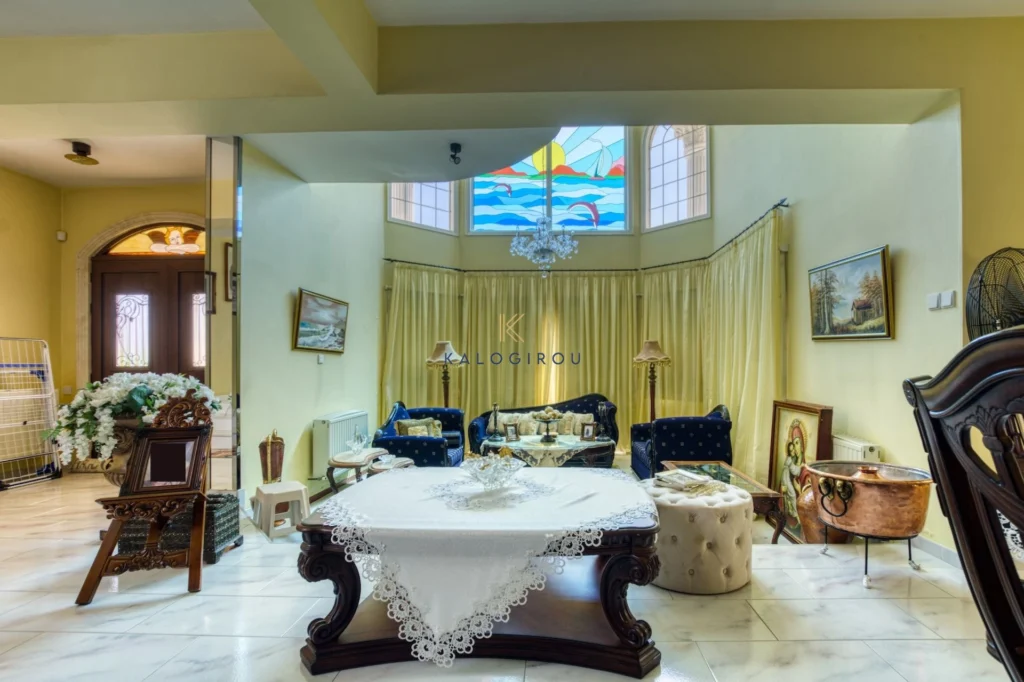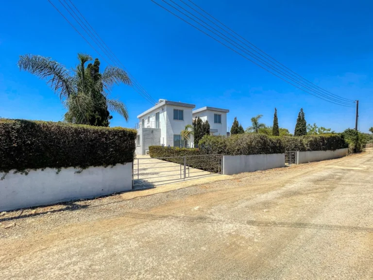 Double story house for sale in Paralimni area, Famagusta. Internal covered area of the house is 250 sqm. The ground floor consists of an entrance hall, spacious open area with lounge, dining, bar area, kitchen combined with siting area, and a guest wc. In addition, there is a laundry-kitchenette room. The first floor comprised of an office, a main bathroom, four generously-sized bedrooms, including a master with en suite bathroom and walk-in closet, offer space and tranquillity. Outside, a beautifully landscaped garden awaits, providing a serene outdoor escape for dining, barbecues, and relaxation.