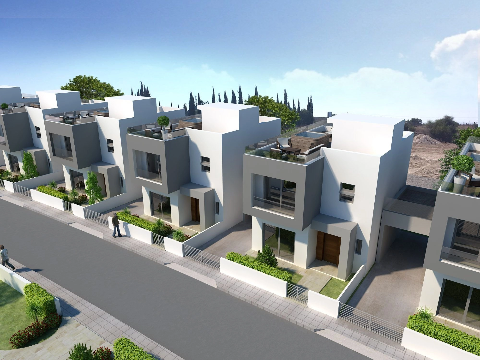 This residential complex offer the owner the best of both worlds. Its rural location ensures tranquillity and seclusion, yet it’s just a few minute’s drive from the cosmopolitan city of Paphos, with its wealth of amenities. In addition providing easy access to the motorway (2km), and easy access to Paphos International Airport and the other major towns on the island. Situated on the outskirts of Paphos, the area is surrounded by traditional villages with an excellent selection of local taverns. Additionally, conveniently located just moments away from Paphos leading international schools this complex comprises of 20 private detached three-bedroom villas with a large landscaped communal garden. The contemporary designs offer privacy and relaxation to residents and their families and contemporary architecture with high-quality finishes offers a beautiful home in a truly unique setting.