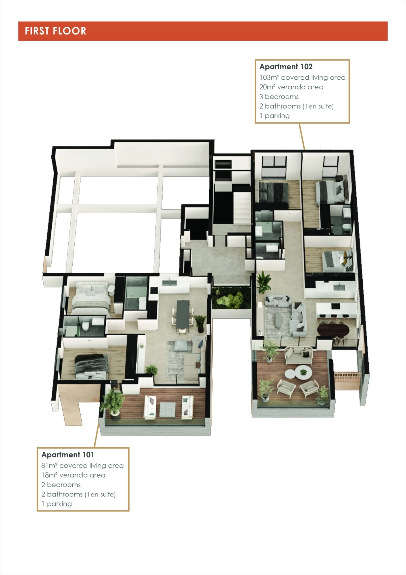 Located in central Larnaca, this luxury complex, spanning three floors, features eight meticulously designed two- and three-bedroom apartments.