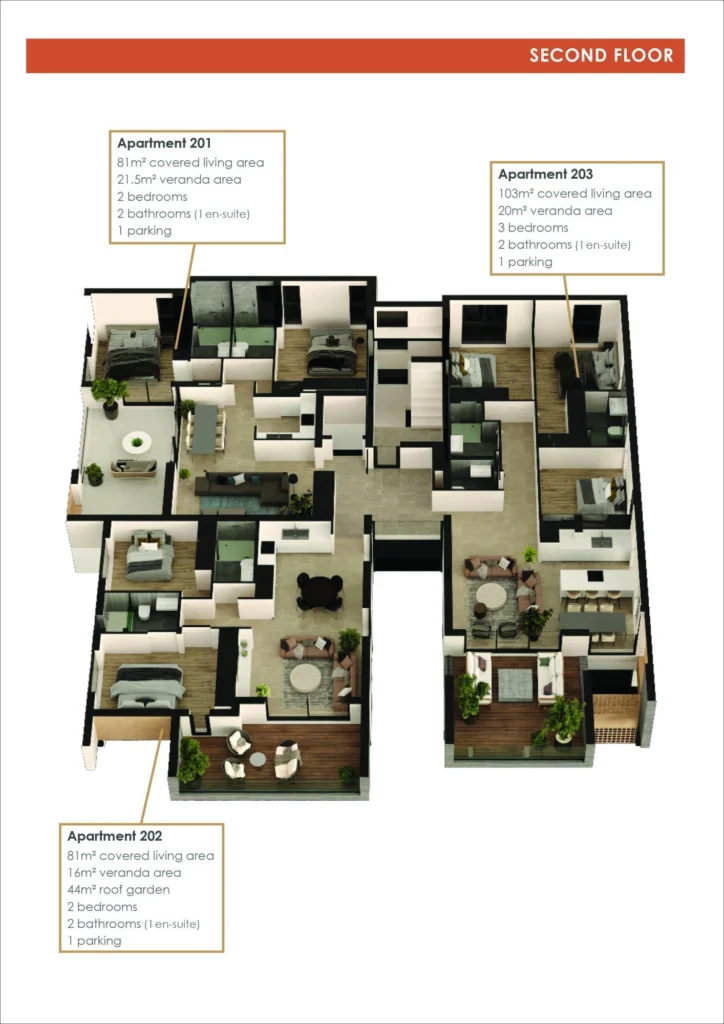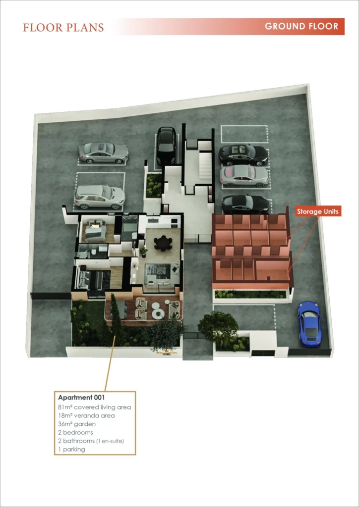Located in central Larnaca, this luxury complex, spanning three floors, features eight meticulously designed two- and three-bedroom apartments.