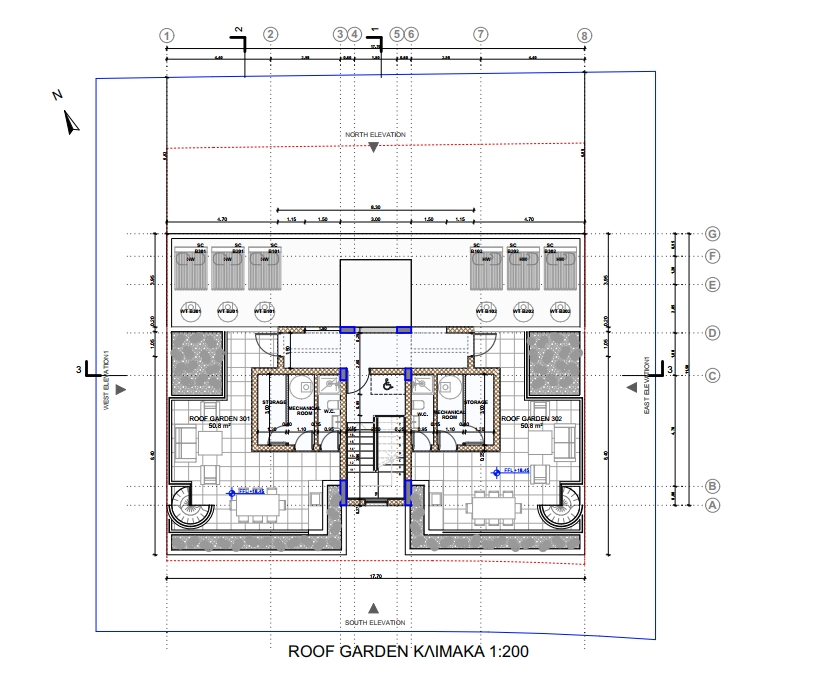 Only two apartments on each of the three floors, with the third-floor units enjoying private and individual access to a large roof garden on the 4th floor with its barbeque area, as well as an extra wc-shower and room that can be converted into 3rd bedroom. Furthermore, these top floor units will have the option for net metering and a photovoltaic system.