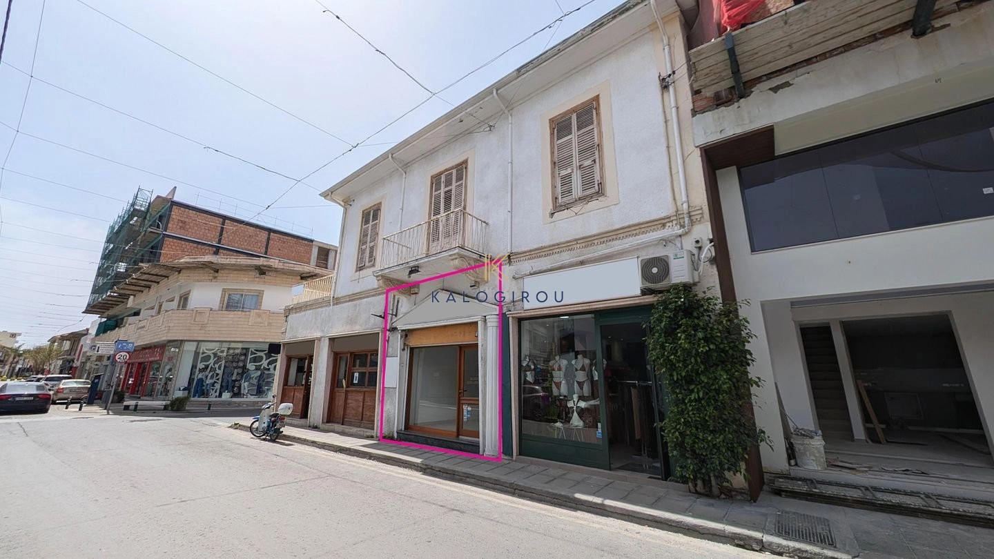 Ground Floor Shop for sale in a prime commercial area of Larnaca centre. The shop was constructed on 1992 and the interior layout includes an open-plan customer service area, workshop space, and a toilet, making it well-suited for a variety of retail or service-oriented uses. The shop has an internal covered area of 56 sq.m.