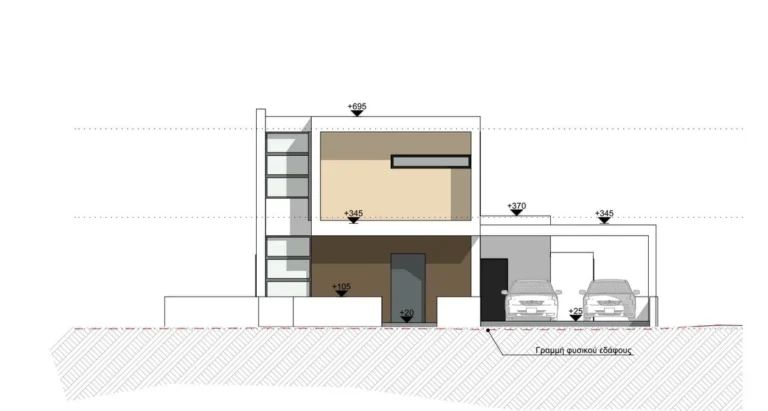 Double storey house for sale in Pervolia area. The ground floor consists of an open plan kitchen, living, dining area, spacious covered veranda, a guest wc, 2 bedrooms, both en suite with shower. The first floor consists of a main bathroom (with shower) and 2 bedrooms. Moreover, there is a 51 sqm lowerlevel and a lower level garden. Externally, the property has spacious garden, covered parking and option for a swimming pool (8×4). Plot area is 635 sqm.