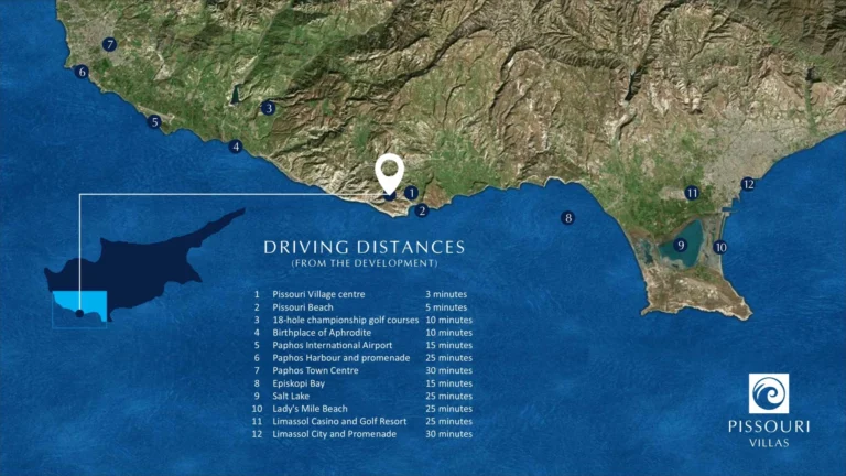 is part of the Pissouri Villas project in Limassol designed with the concept of Mediterranean living in mind, while offering a choice of designs in luxury detached properties. Select from a variety of 2, 3, 4 and 5-bedroom villas and bungalows ideal for holiday homes, permanent residence and for investment purposes. Large landscaped gardens offer ample room for private swimming pools and barbeque areas. Choose your finishes and create appealing living spaces with wood-burning fireplaces, pergola covered sun terraces and the touch of natural stone.