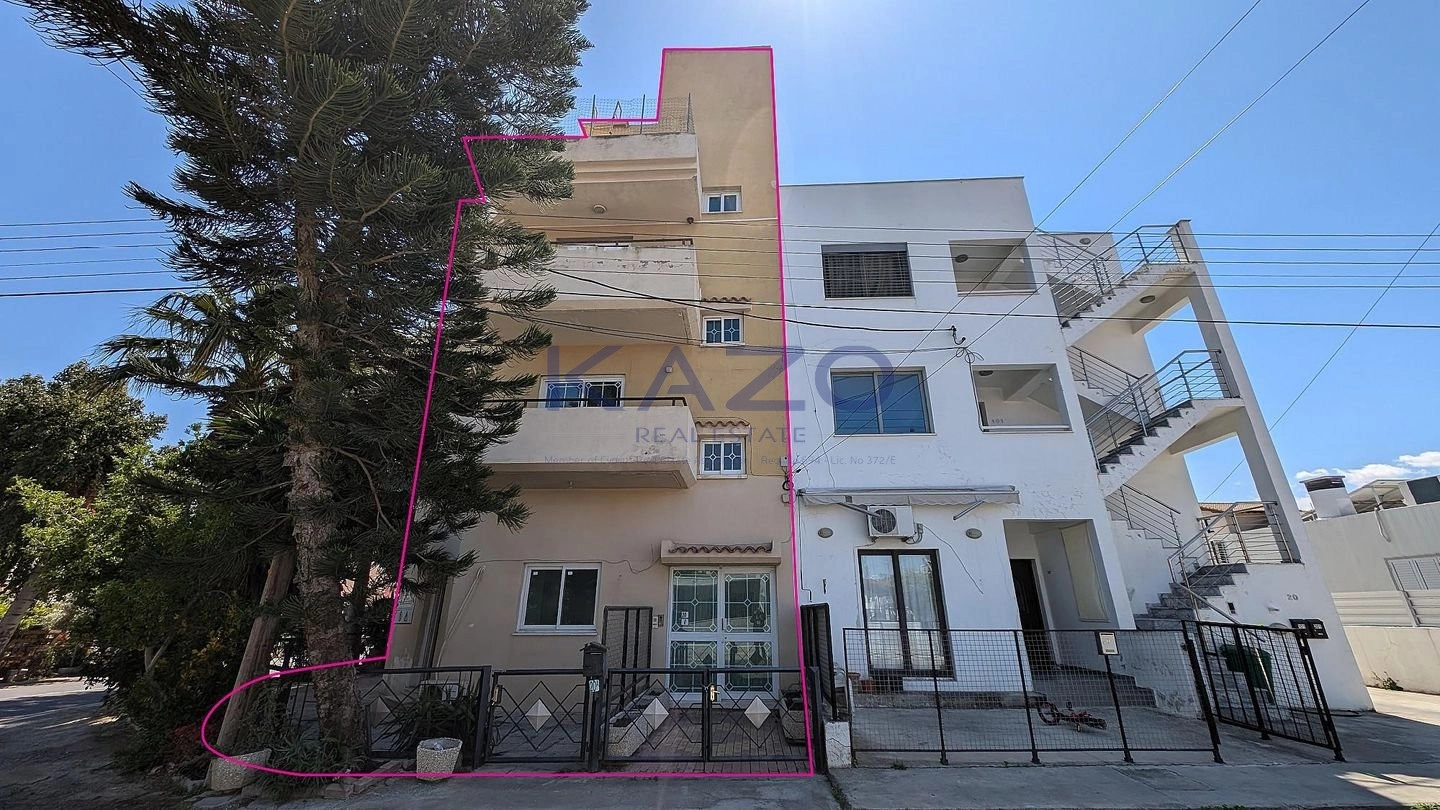 IN CLOSED TENDER PROCESS DEADLINE: TUESDAY 24th of February, 2026 at 10:00 am. (morning time) This three-storey building with four apartments is located in Kaimakli,Nicosia. The Ground floor consists of two, one-bedroom apartments. Each apartment consists of a living room – kitchen in an open-plan area, a bedroom, and a toilet. The first floor comprises of an open plan living/dining/kitchen area, three bedrooms, a guest’s toilet, and a family bathroom. The second floor consists of an open plan living/dining/kitchen area, four en – suite bedrooms and one guests’ toilet. The asset is located on the corner of Onisilou & Chalefkas Street, about 450m northeast of Ayiou Ilarionos Avenue, about 780m northwest of the roundabout known as Bata’s, and approximately 360m southwest of the buffer zone. The property falls within Zone Κα4, with a building coefficient of 120%, coverage of 50%, and permission for 3 floors (13.5m) of construction. Energy Rating: Apartment 001: C Apartment 002: C Apartment 101: C Apartment 201: E