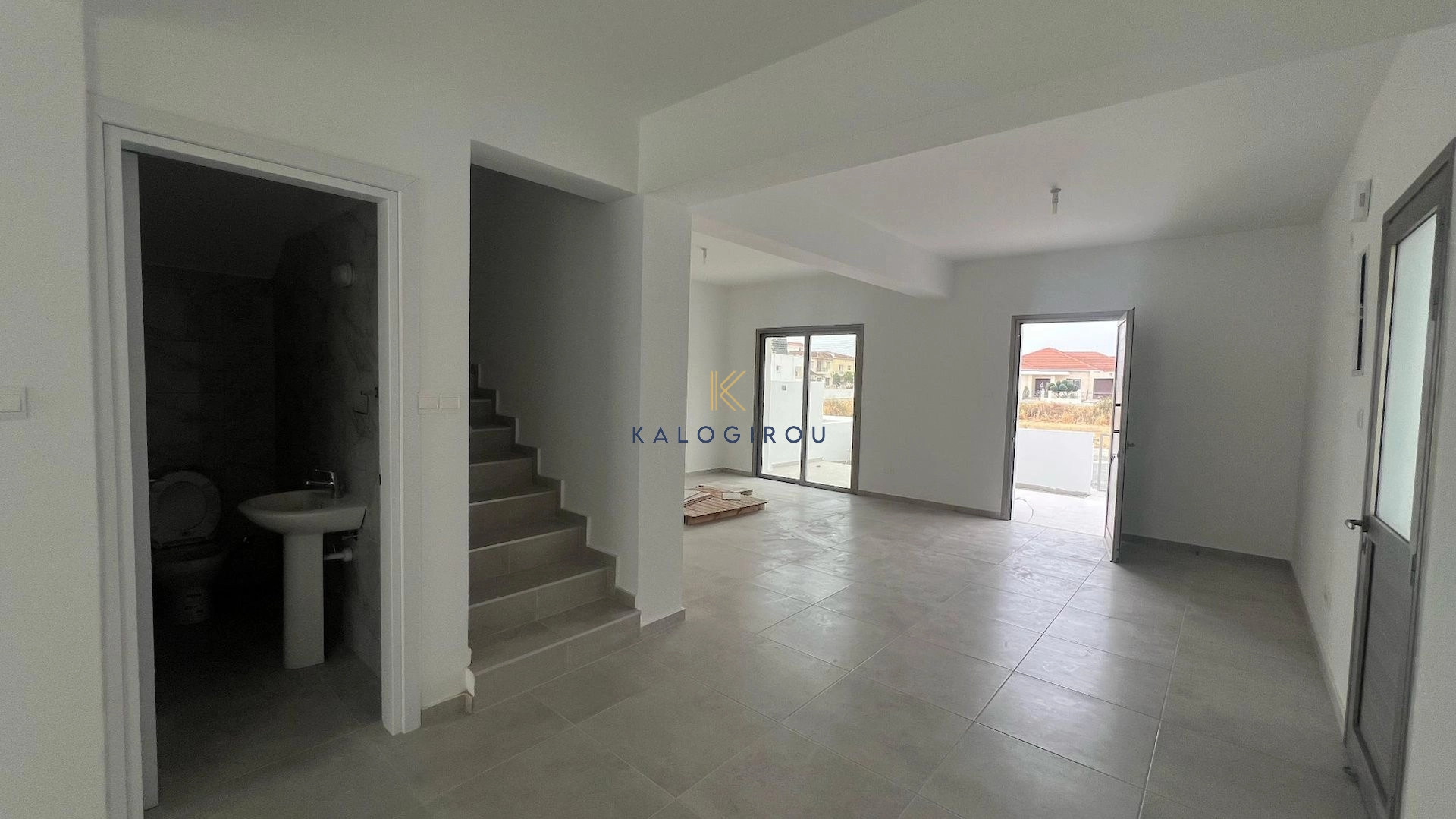 Brand New House for Sale in Kiti Village, Larnaca. This house is a double story, semi-detached house with internal covered area of 160 sq m in a plot of 193 sq m. On the ground floor consists of a separate kitchen and living/dining room and one guest toilet. On the first floor it consists of three spacious bedrooms, the master with en-suite shower and walk-in closet and one common bathroom. Externally, the property has garden and covered parking. The property also has provision for A/C.