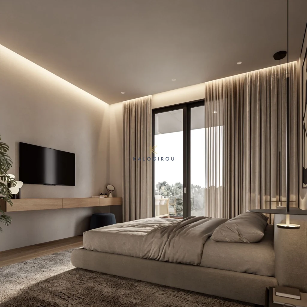 First floor apartment for sale in Oroklini, Larnaca. It consists of an open plan kitchen, living, dining area, family bathroom, a large covered veranda, two bedrooms, master bedroom en suite with shower. The residents will have exclusive right of use to a covered parking space and storage, while they can enjoy the complex’s common facilities.