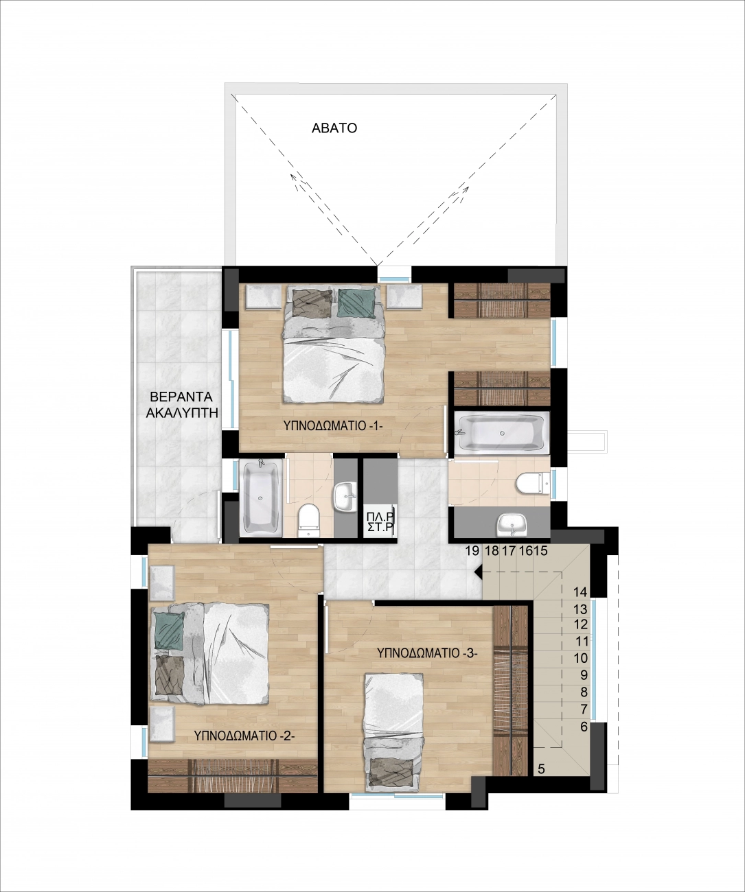 • Installation of electric shutters in the bedrooms and provision in the other areas.