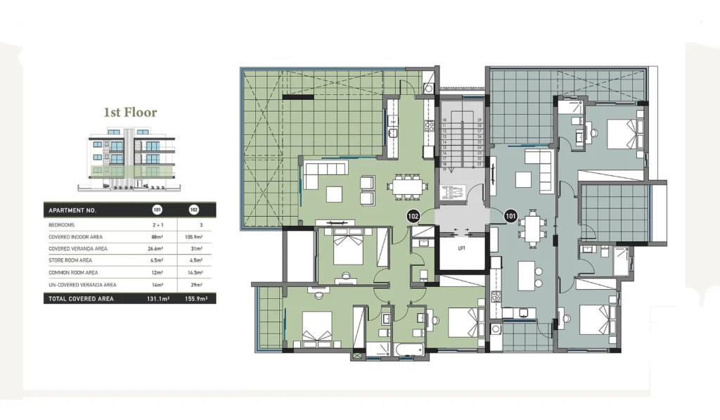 Α stunning new private estate of apartment residences, offering a modern and truly luxurious environment, located in the exclusive Columbia Area of Limassol, in the heart of Cyprus’ most cosmopolitan destination. Convenient location, walking distance to supermarket and amenities.