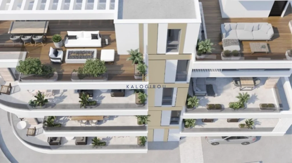 Apartment for sale in New Mall area, Larnaca Town. It consists of an open plan kitchen, living, dining area, a main bathroom (walk-in shower), one bedroom, covered and uncovered veranda. The property has access to an allocated covered parking space and storage room on the ground floor.