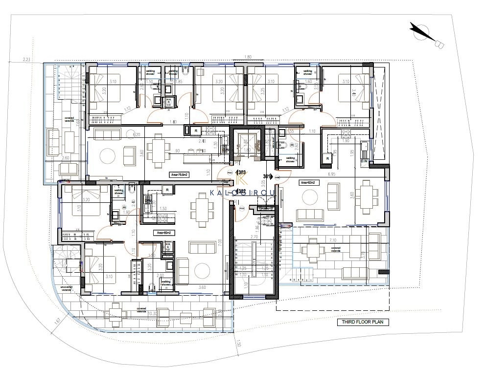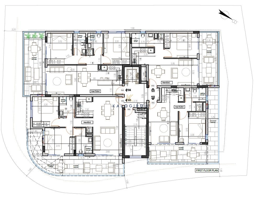 Apartment for sale in New Mall area, Larnaca Town. It consists of an open plan kitchen, living, dining area, a main bathroom (walk-in shower), one bedroom, covered and uncovered veranda. The property has access to an allocated covered parking space and storage room on the ground floor.