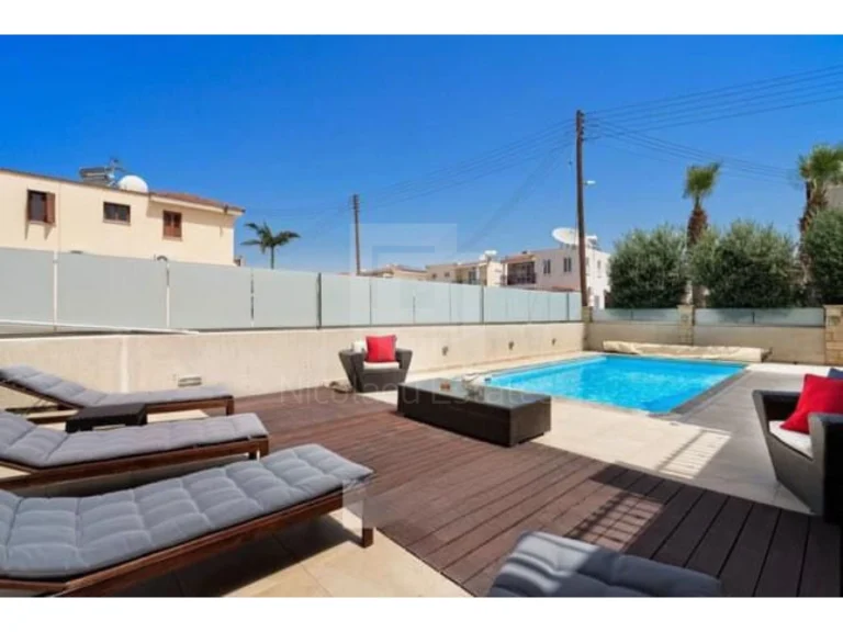 Luxury Villa for sale situated in the most popular area in Paphos Universal area 5 minutes from the sea. FEATURES Inside area 370m2 Plot 600m2 6 bedrooms 5 bathrooms Private swimming pool Fully furnished Photovoltaic systems CCTV cameras Alarm system Garage for 3 4 cars 2 storage rooms Fireplace Full air condition Central heating.