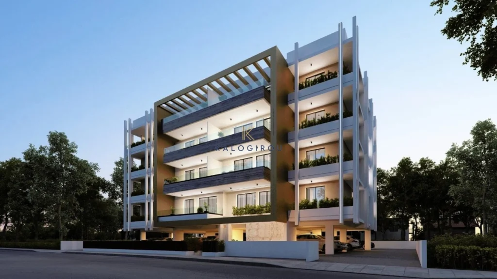 Apartment for sale in Larnaca, Mc Donald Drive Thru area. The apartment has internal covered area of 82 sq.m, consists of an open plan kitchen, dining and living area, two bedrooms, one bedroom is en suite with shower with wc, one main shower with wc, covered balcony of 19.9 sq.m, uncovered balcony of 2.2 sq.m, storage room and covered parking.