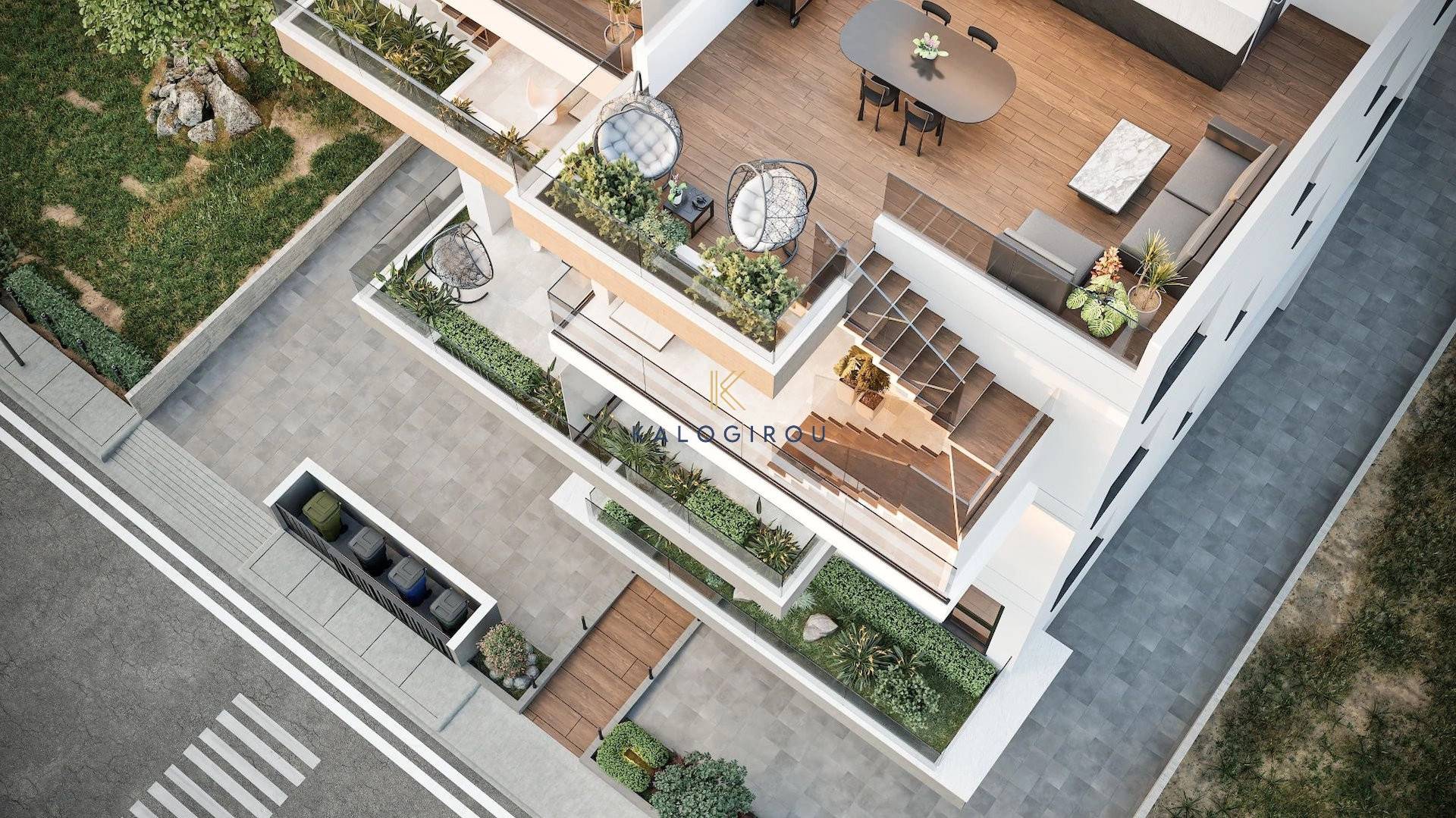 This remarkable project boasts 9 apartments in total; five 1-bedroom and four 2-bedroom apartments. The apartments on the third floor benefit a private roof garden with panoramic views of the amazing neighborhood. The roof garden area consists of a siting area, storage room. Each apartment benefits a private covered parking and storage room on the ground floor.