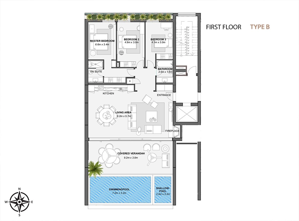 Each apartment stands on its own just like a private residence. Apartments are spacious, bedrooms have en suite bathrooms, there is plenty of cupboard space, high ceilings, private pools, large terraces, plenty of