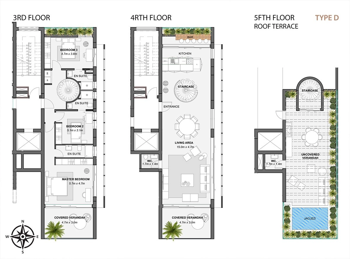 Each apartment stands on its own just like a private residence. Apartments are spacious, bedrooms have en suite bathrooms, there is plenty of cupboard space, high ceilings, private pools, large terraces, plenty of