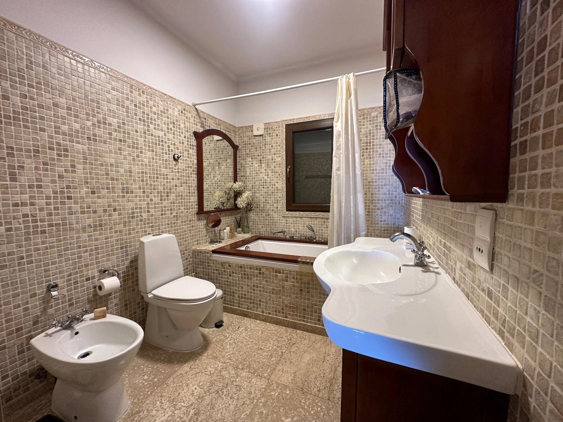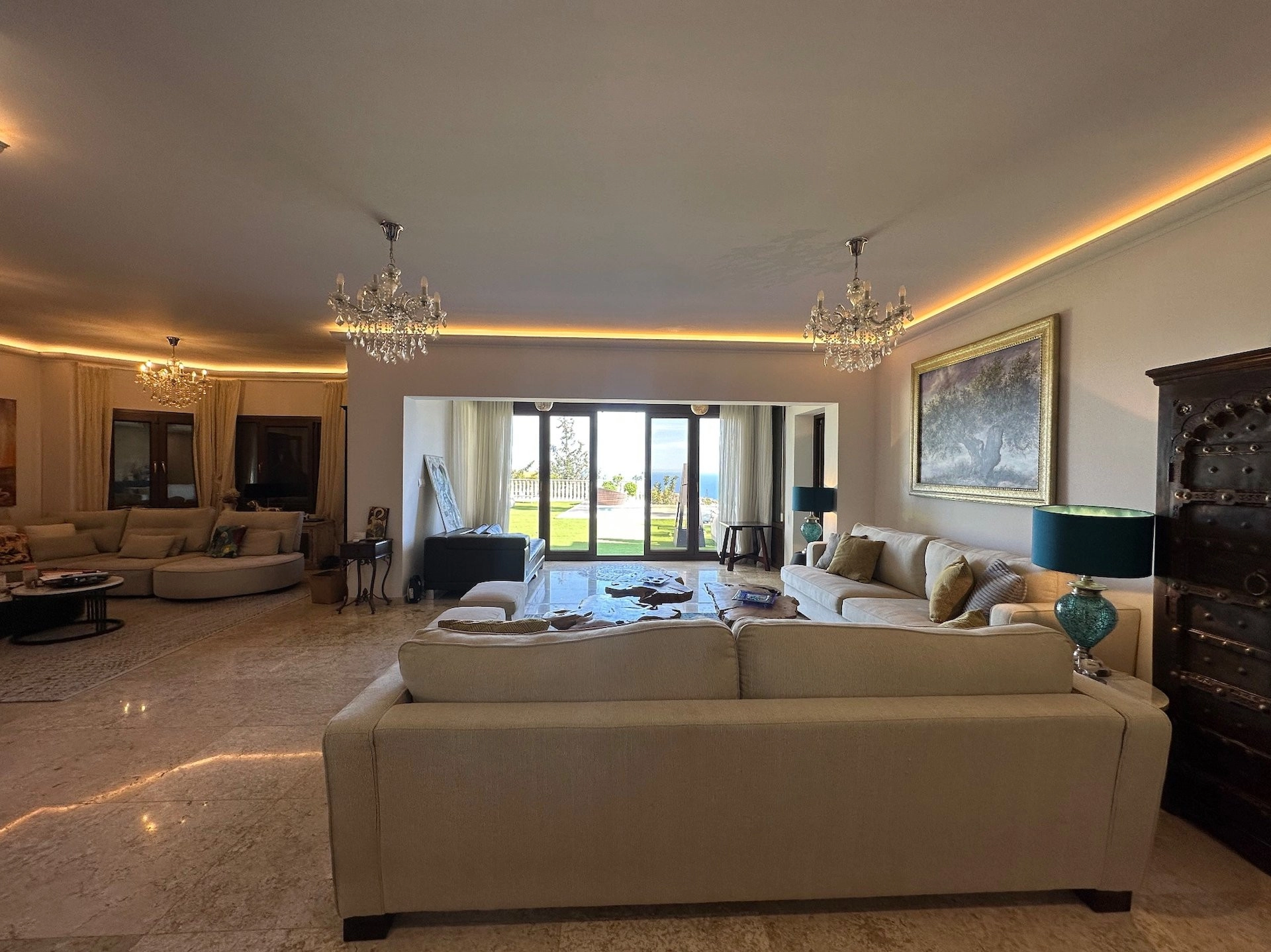 The villa benefits from comforts including geothermal heating, a VRV air-conditioning system, and mature landscaped gardens that enhance the natural beauty of the surroundings. While some modernization is required, the property's rare land size and premium location with completely unobstructed sea views, make it a truly valuable find with enormous potential.