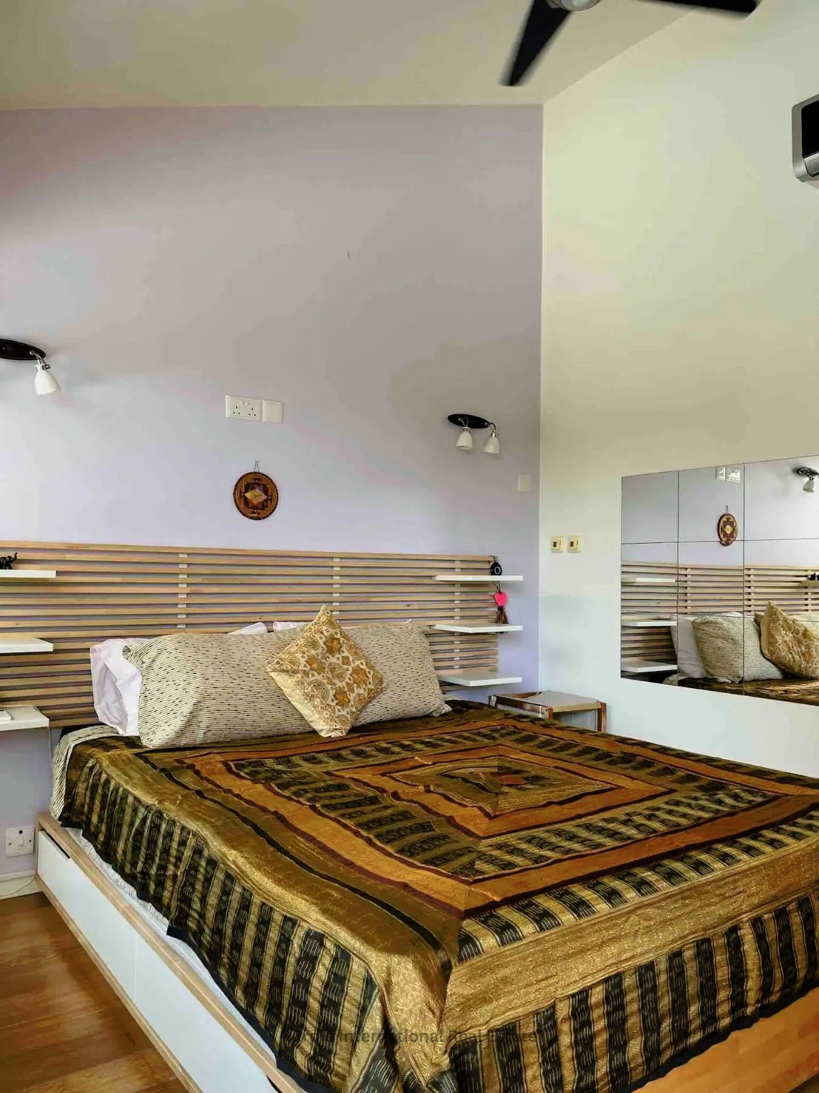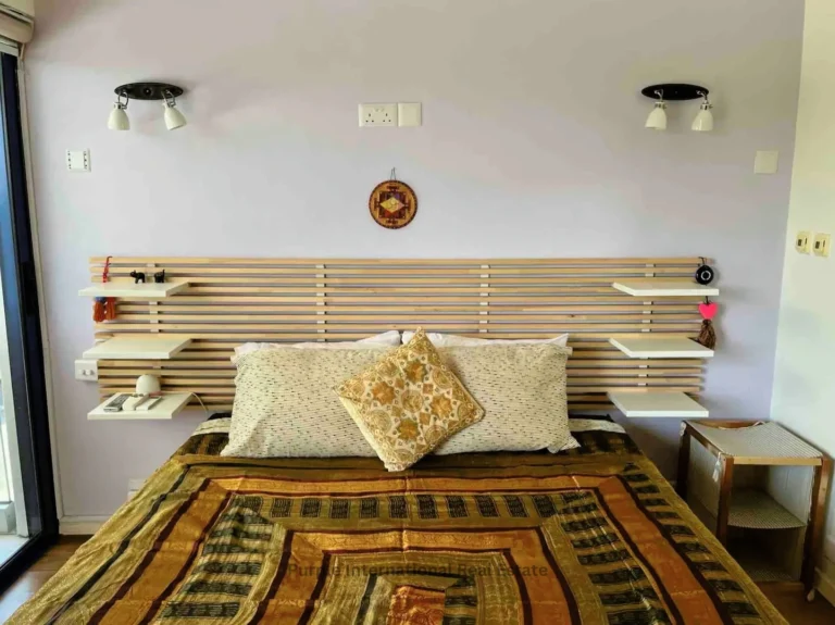 Leading up from the kitchen are two exceptionally spacious bedrooms, one on the first floor and the other up a further flight of stairs. Both bedrooms open out onto to private balconies. The Master bedroom opens to a sea view balcony and features floor to ceiling custom made full wood and glass wardrobes.