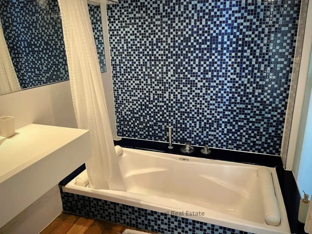 Leading up from the kitchen are two exceptionally spacious bedrooms, one on the first floor and the other up a further flight of stairs. Both bedrooms open out onto to private balconies. The Master bedroom opens to a sea view balcony and features floor to ceiling custom made full wood and glass wardrobes.
