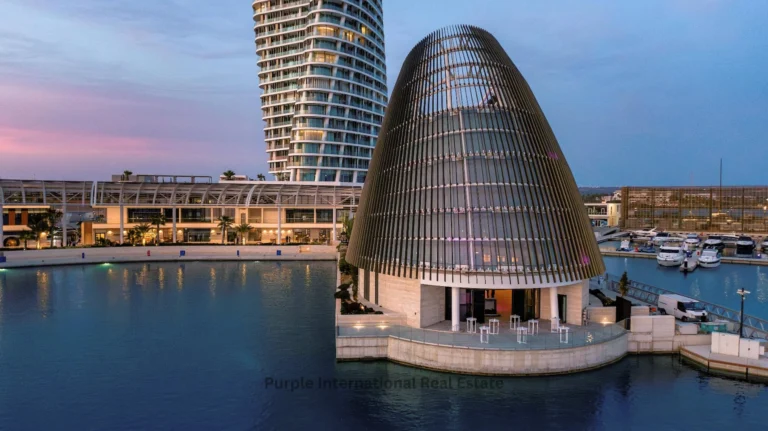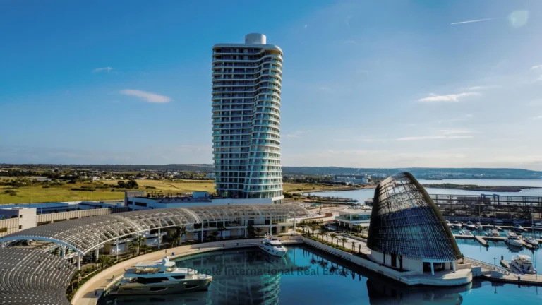 Rising high above the marina are two iconic towers, visible from both land and sea. Over 100 meters tall, the towers stand out in splendour like beacons welcoming seafarers, residents and visitors alike. Their twisting forms are inspired by the female figure and draped robes of caryatids and sculptures found at archaeological sites throughout Cyprus. Their facades are articulated with a filigree of warm-toned vertical sunshades suggestive of the woodcraft and detail of shipbuilding.