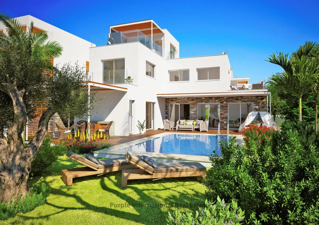 For sale: Off-plan detached villa with a generous internal space of 216 m2, located in the desirable area of Geroskipou. This modern home offers four spacious bedrooms and three stylish bathrooms, making it perfect for family living or for those who appreciate comfort and space.