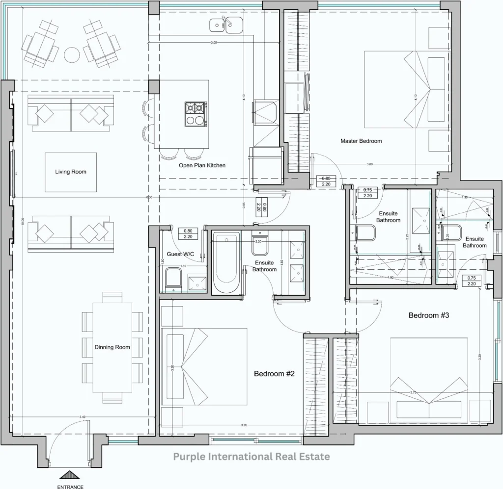 Includes a guest WC, 1 master bedroom with en-suite bathroom and 2 additional double bedrooms with en-suite bathrooms.