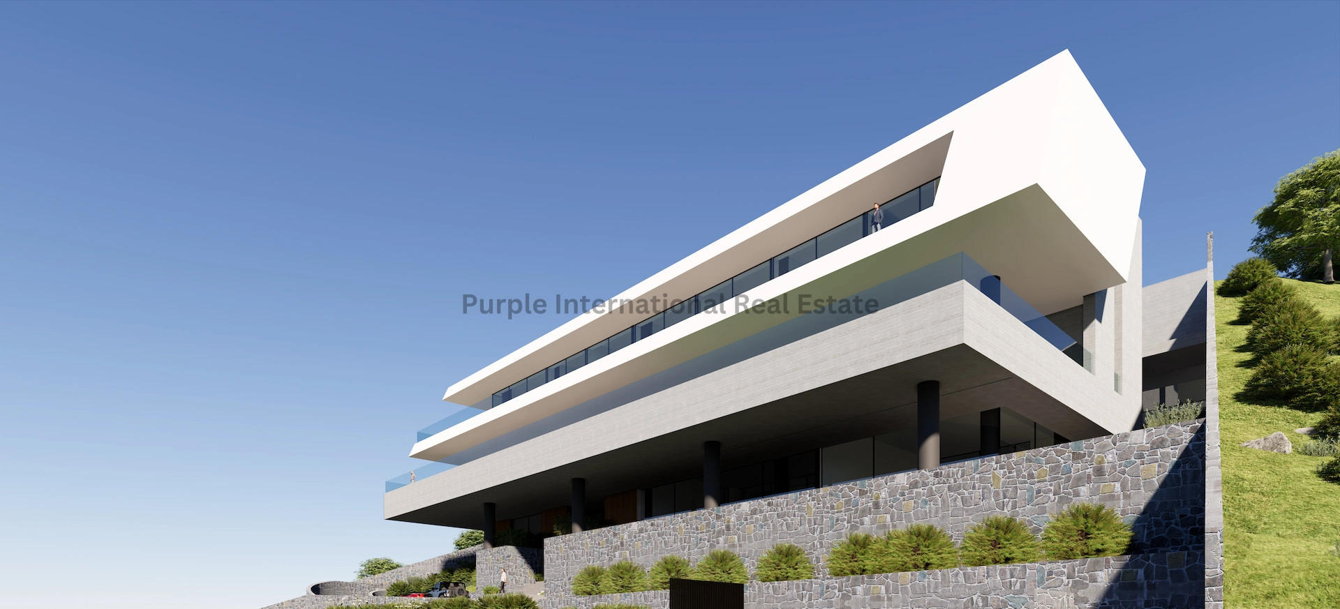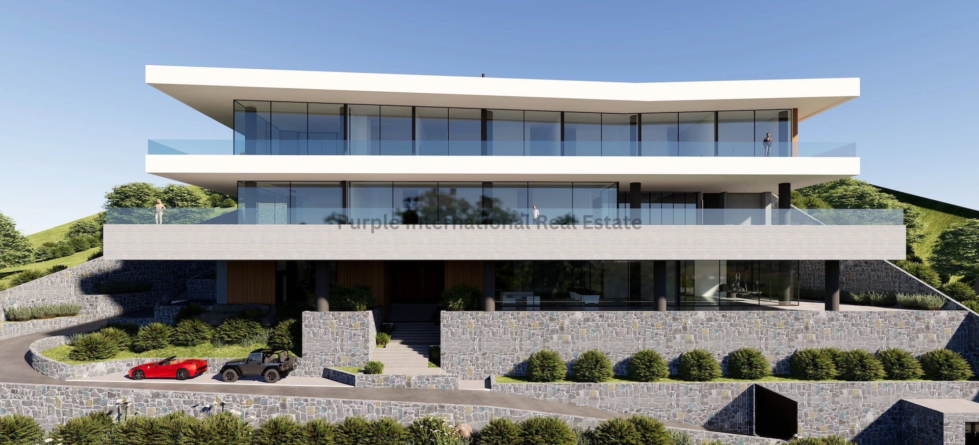 Set on a large plot within a secure, gated complex, the villa boasts a bright open-plan design. Enjoy stunning panoramic views, including breath-taking mountain and sea vistas. The villa is equipped with a central AC system, underfloor heating, an elevator, and a basement for extra convenience and space.