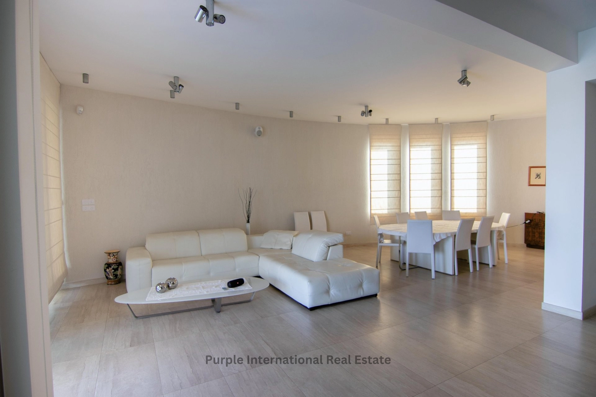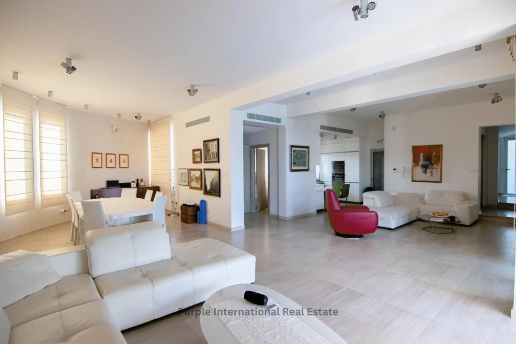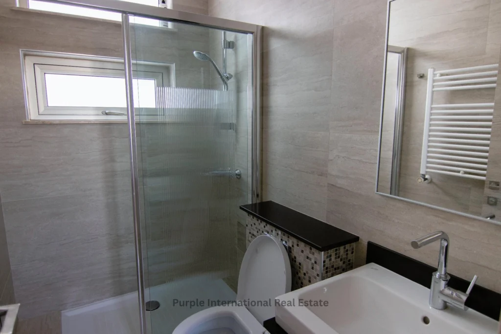 The vast master bedroom features an en-suite bathroom, shower room, a sauna, and a large private veranda offering panoramic sea views. The villa is also equipped with an elevator, providing access from the basement up to the roof garden which offers breathtaking views of Potamos, Ayia Thekla, and even Cape Greko!