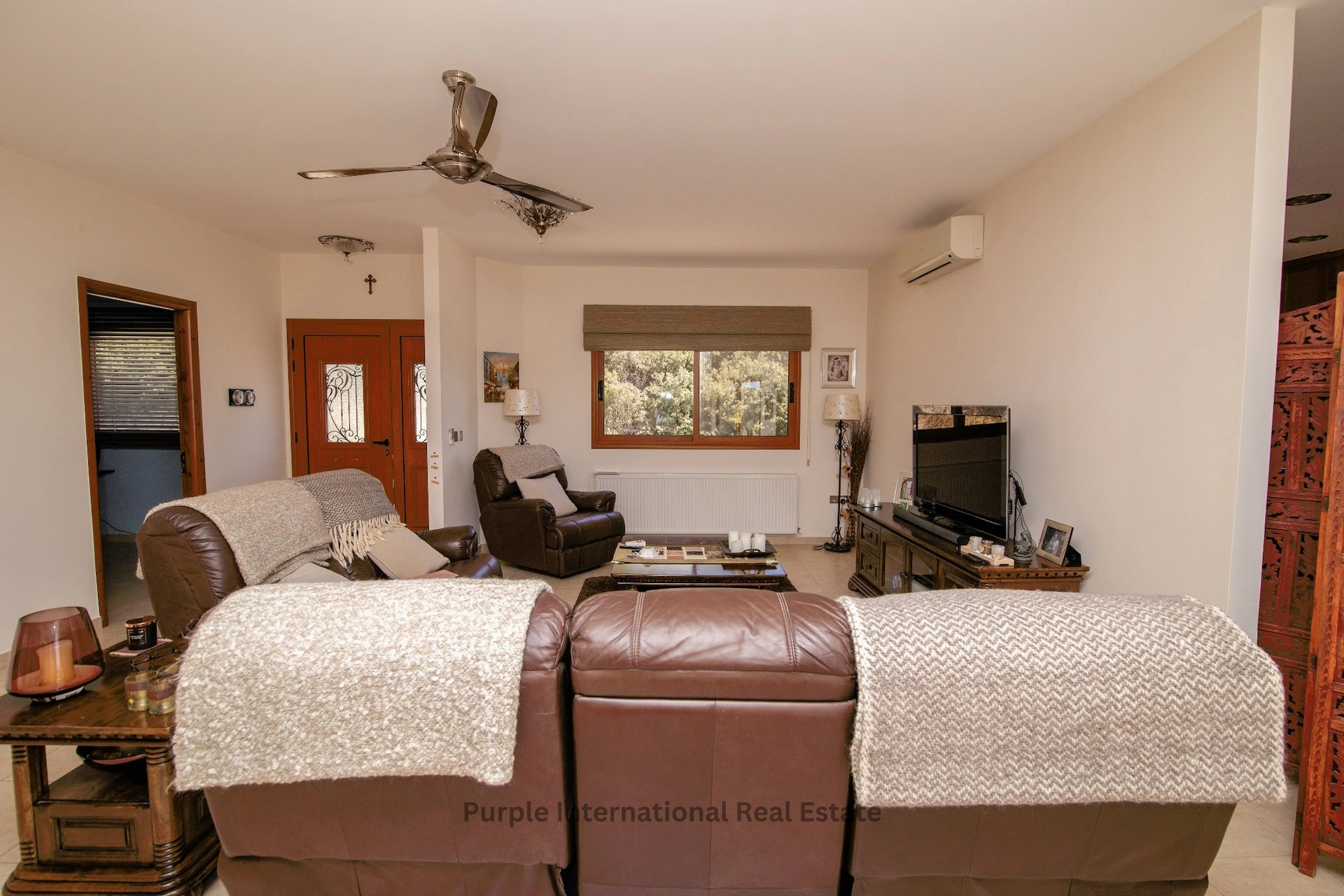 This property is being sold unfurnished, but all or some of the furniture is negotiable. The main house benefits from central heating, which can be operated using either a gas boiler or an electric boiler, augmented by the six solar water heating panels. Air conditioning units are fitted in each room, and ceiling fans are in the three large bedrooms, living room, and bar area. Access to the loft space is from the third bedroom, and a security camera system is installed and can be monitored via the internet.