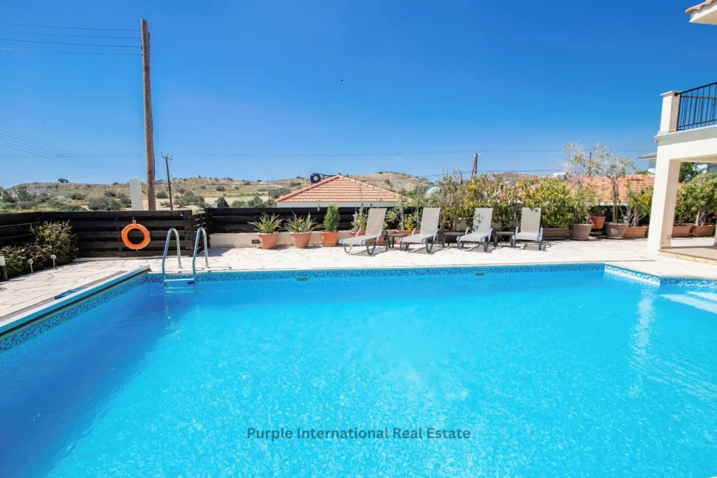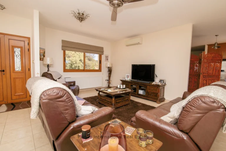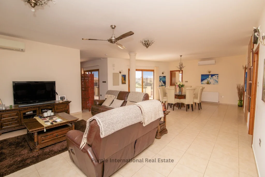 Introducing this stunning five bedroom family home, situated in an elevated position on the outskirts of the picturesque village of Psematismenos. This immaculate property boasts a built area footprint of approximately 250sqm, consisting of a four-bedroom bungalow with a utilised basement area of the same size. The basement comprises approximately 130sqm of living space, including a 7.30 x 3.90 metre garage, storage rooms, a boiler room, and covered areas.